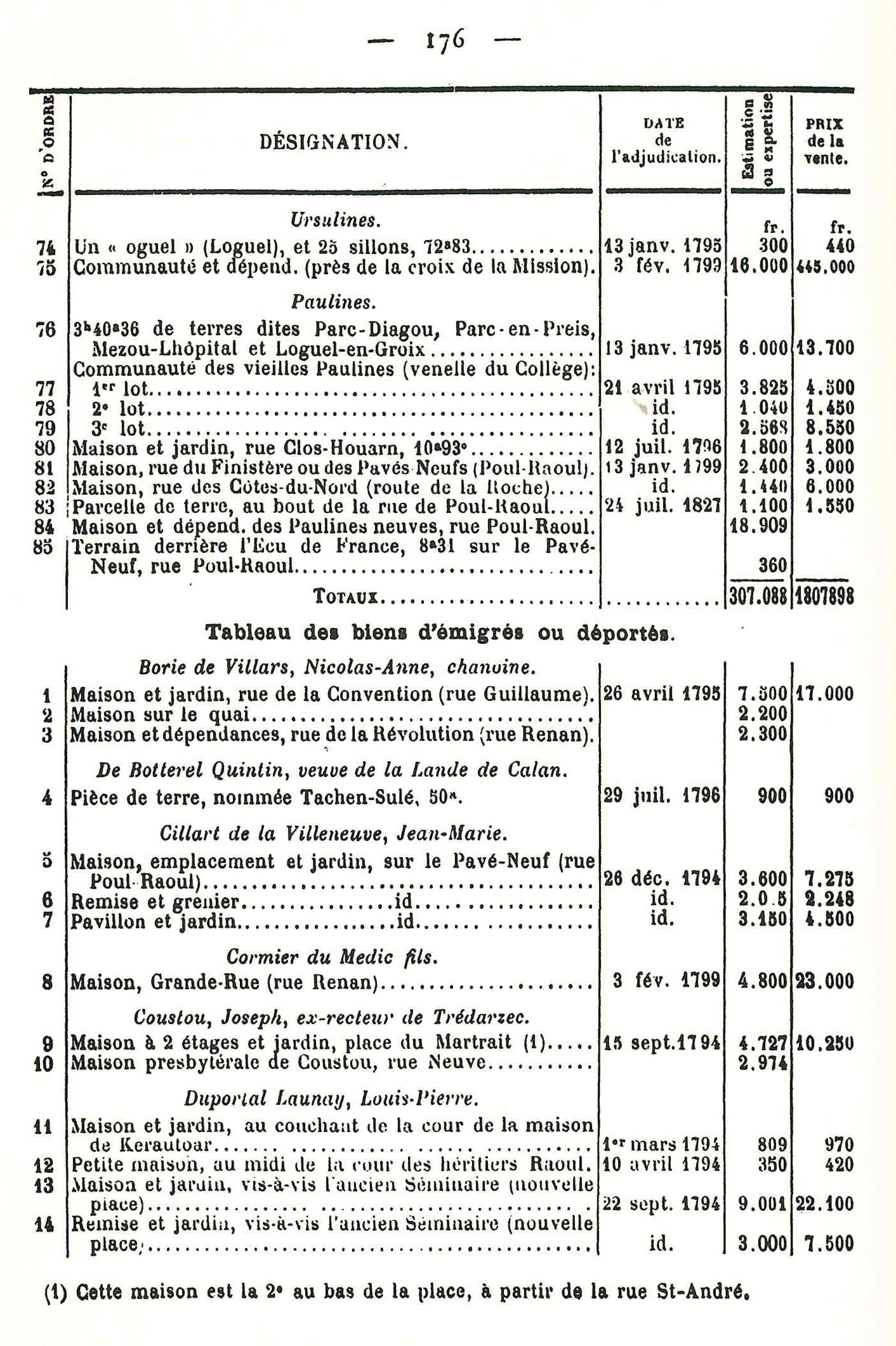 Tréguier : tableau des biens du Clergé et des Maisons religieuses par Adolphe Guillou (Essai historique sur Tréguier par un Trécorrois, p. 176)Immatriculation