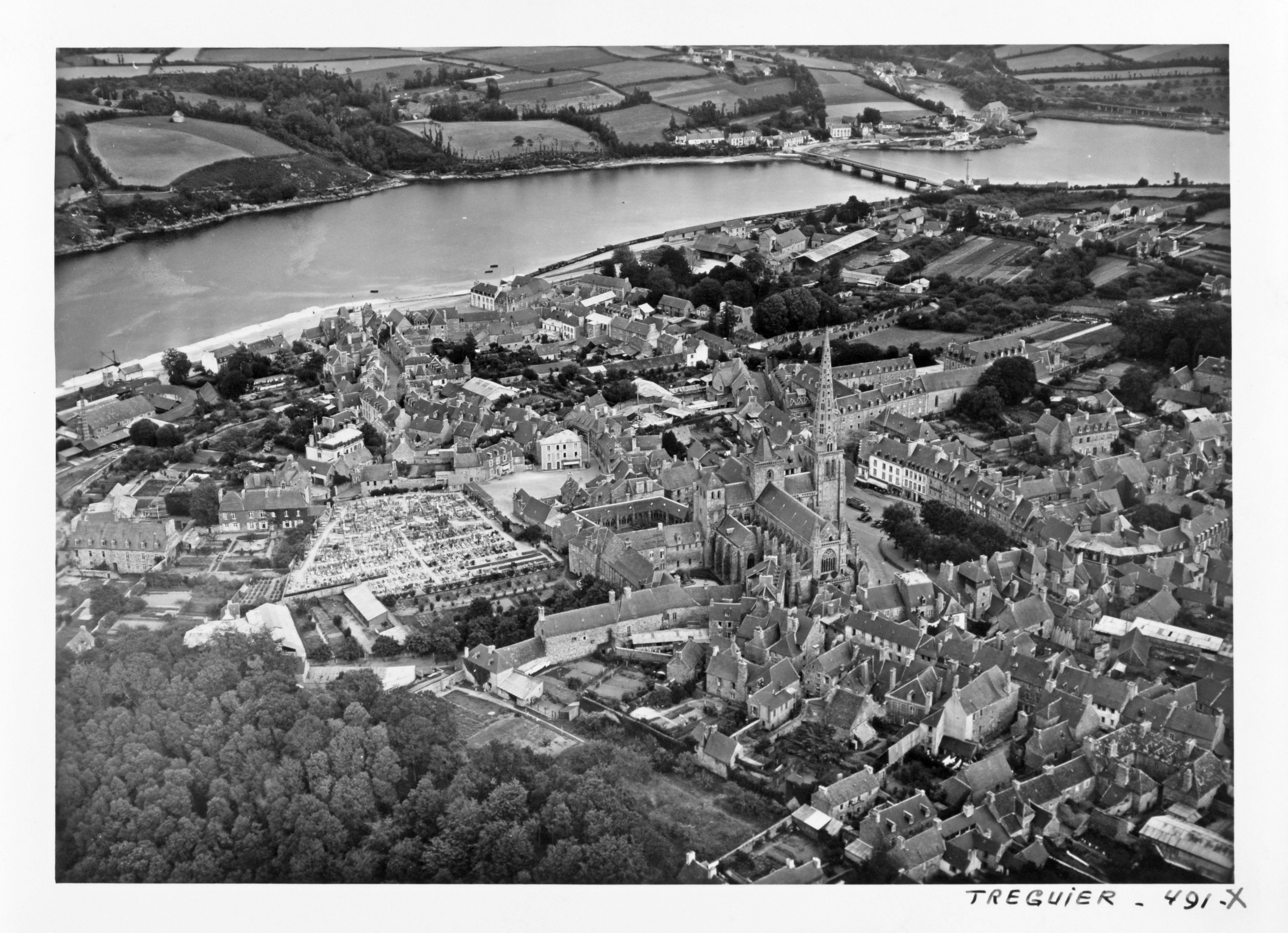 Tréguier : vue aérienne oblique de la ville depuis le nord-nord-ouest par Roger Henrard, photographie antérieure à 1954 (Archives départementales des Côtes-d'Armor, collection photographique Henrard : FRAD022_26Fi_462)Immatriculation