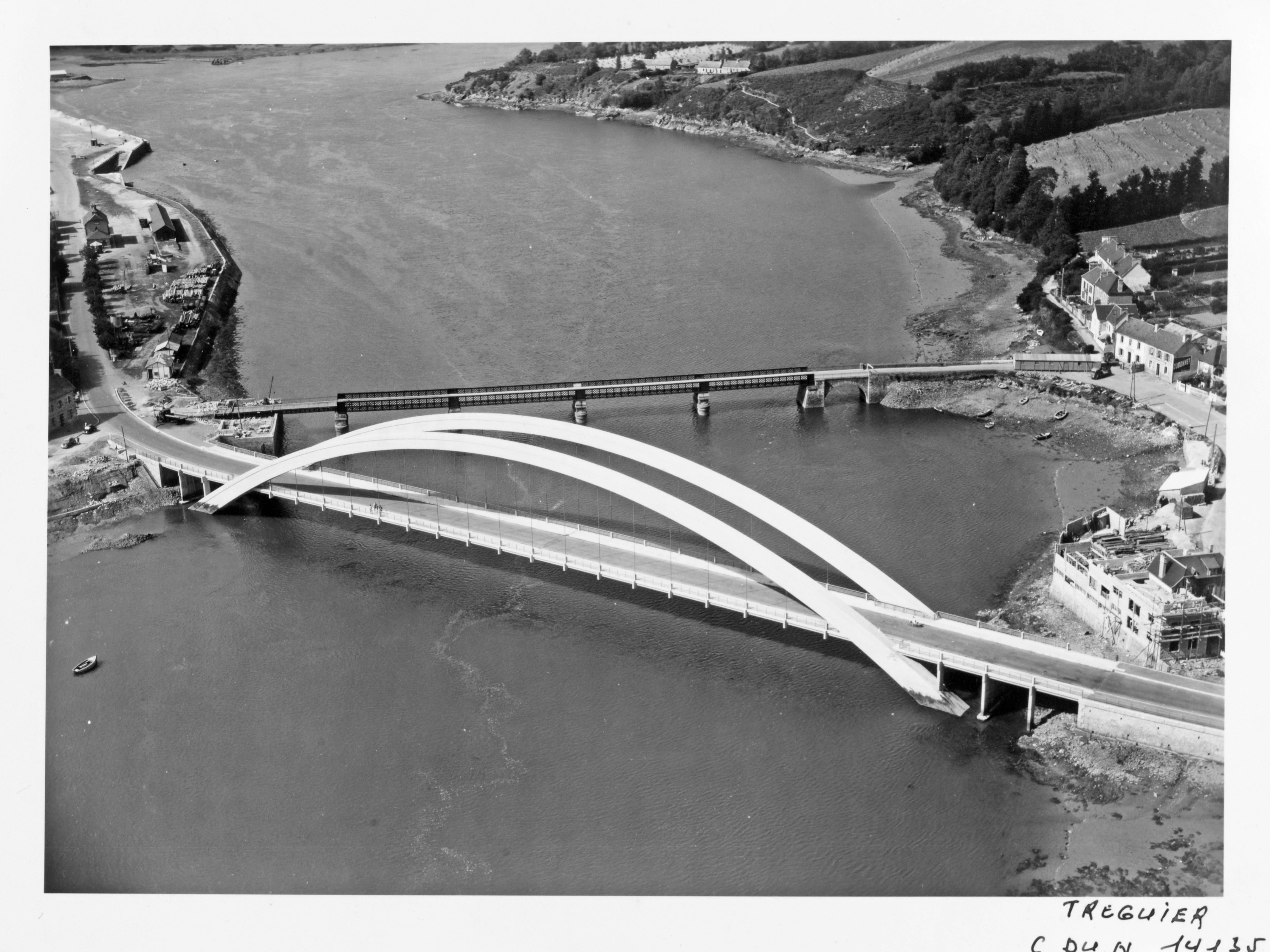Tréguier : vue aérienne oblique des ponts Canada (ancien et nouveau) franchissant le Jaudy, vers 1954 (Archives départementales des Côtes-d'Armor, collection photographique Henrard : FRAD022_26Fi_457)Immatriculation