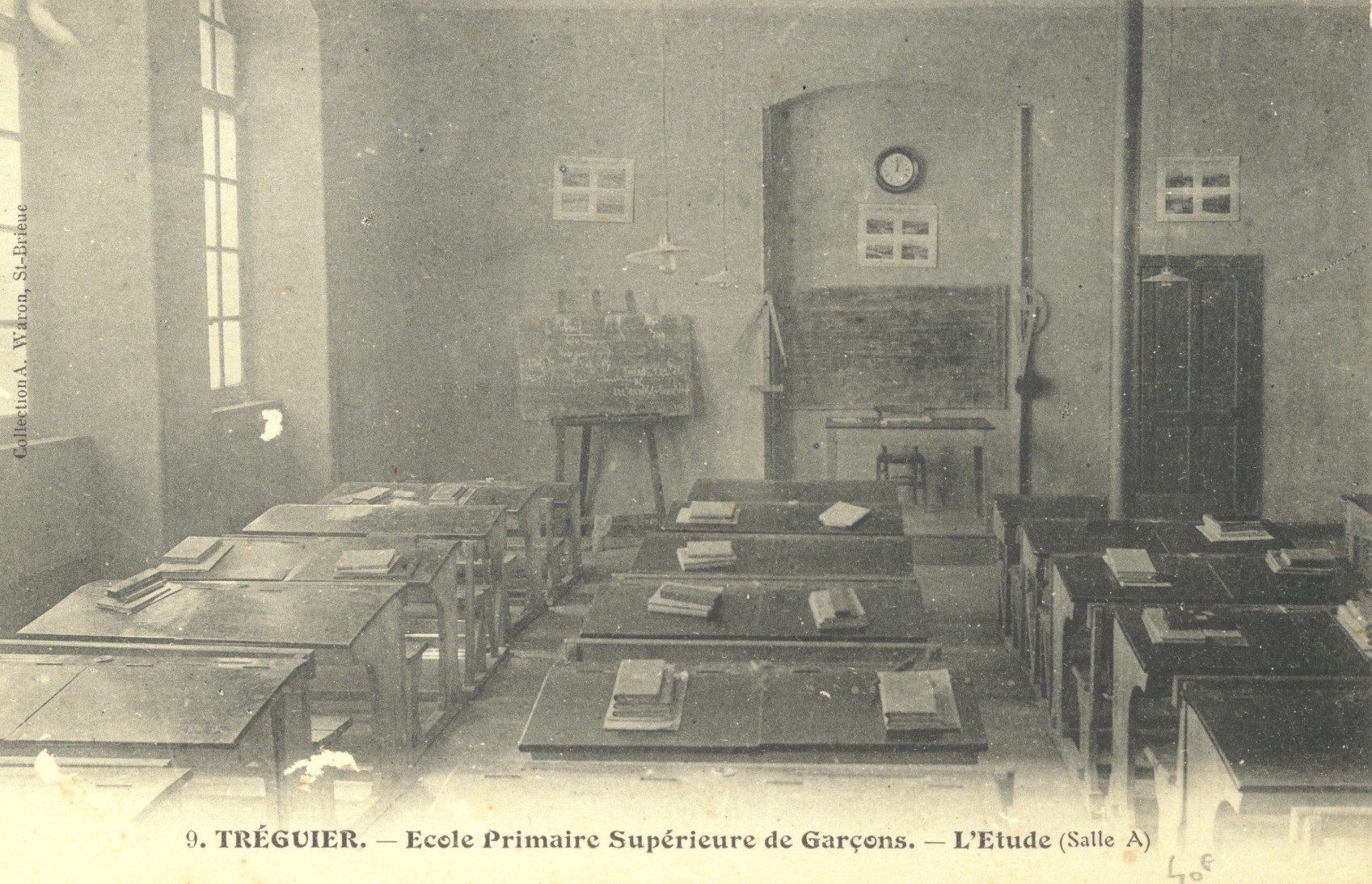 Tréguier : petit séminaire puis école primaire supérieure de garçons (l'étude, salle A), carte postale (collection iconographique réunie par Michel Le Cam, ancien professeur au Lycée Joseph Savina)Immatriculation