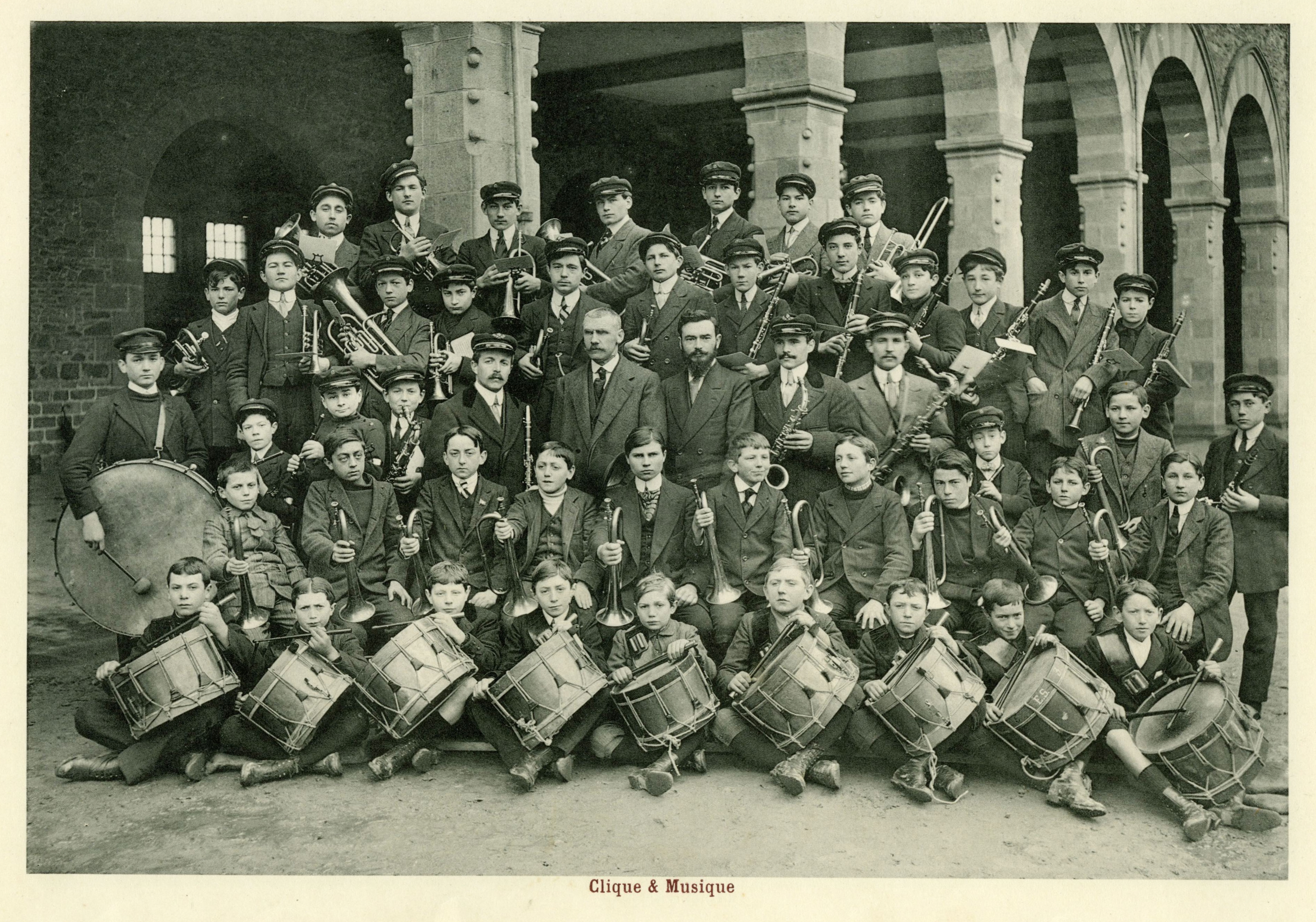 Tréguier : petit séminaire devenu école primaire supérieure de garçons, "clique et musique", plaquette de présentation de l'école, année scolaire 1913-1914 (collection iconographique réunie par Michel Le Cam, ancien professeur au Lycée Joseph Savina)Immatriculation
