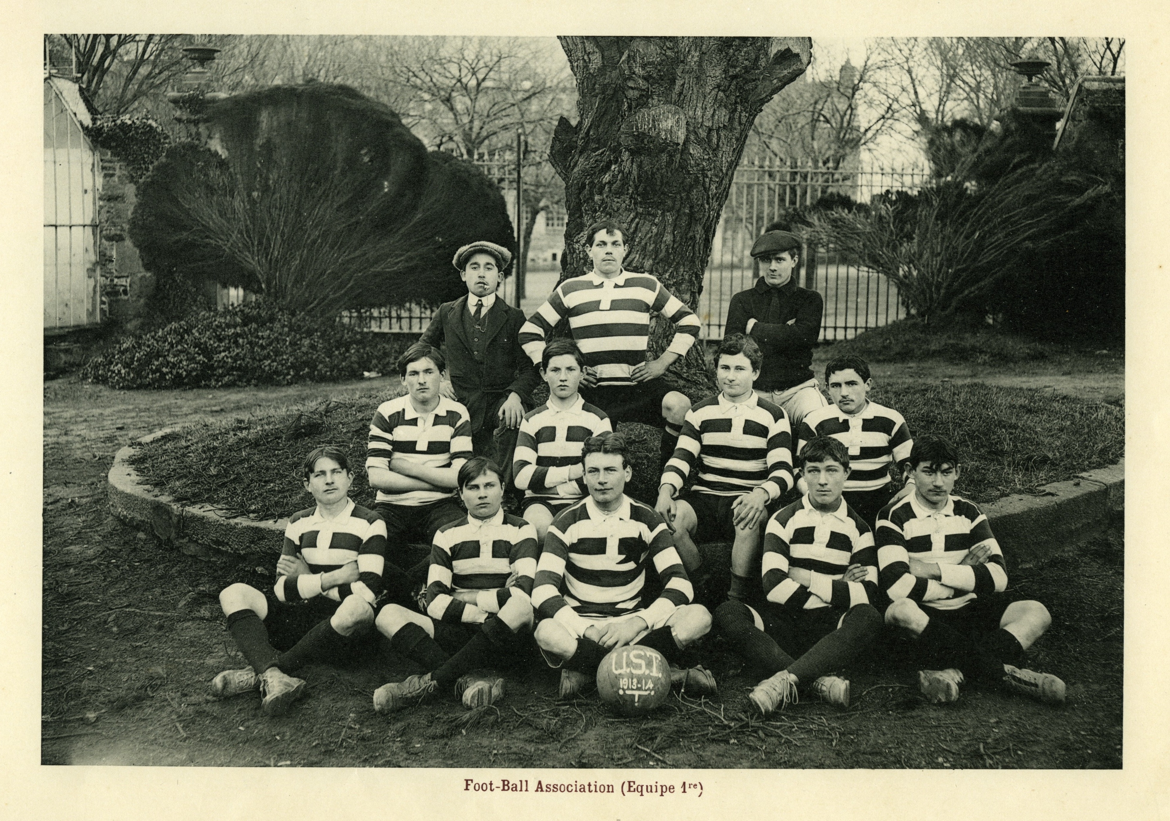 Tréguier : petit séminaire devenu école primaire supérieure de garçons, "Foot-Ball Association (équipe 1ère)", plaquette de présentation de l'école, année scolaire 1913-1914 (collection iconographique réunie par Michel Le Cam, ancien professeur au Lycée Joseph Savina)Immatriculation