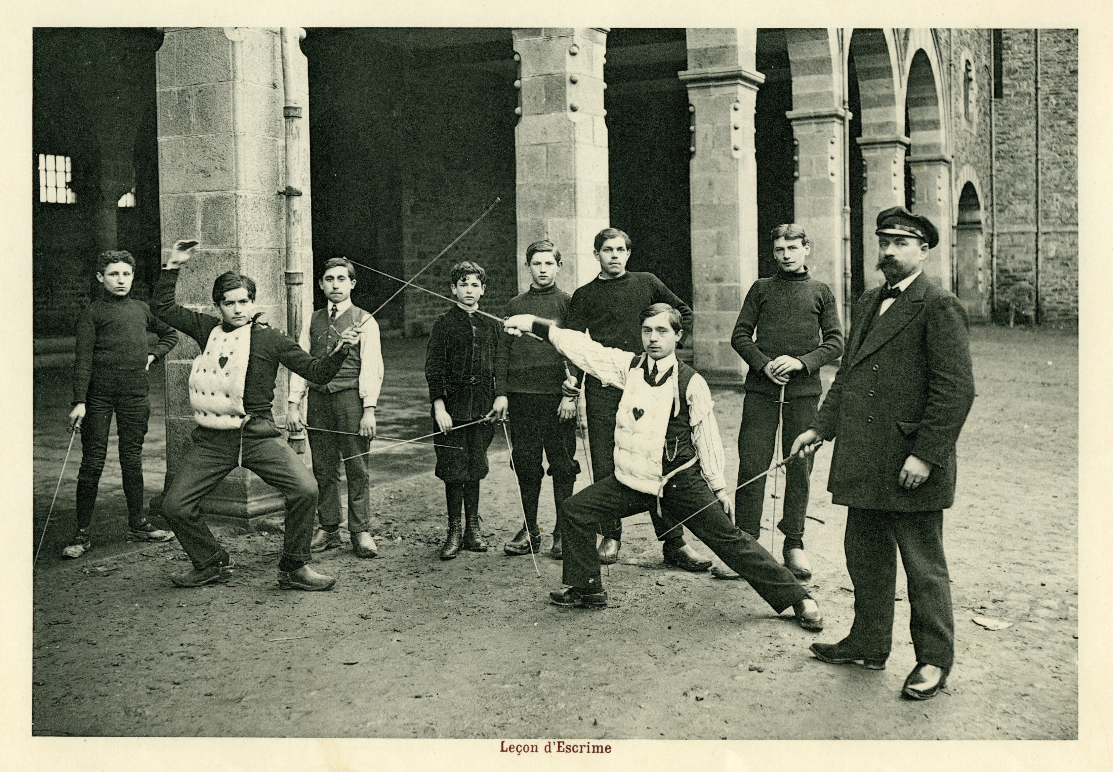 Tréguier : petit séminaire devenu école primaire supérieure de garçons, leçon d'escrime, plaquette de présentation de l'école, année scolaire 1913-1914 (collection iconographique réunie par Michel Le Cam, ancien professeur au Lycée Joseph Savina)Immatriculation