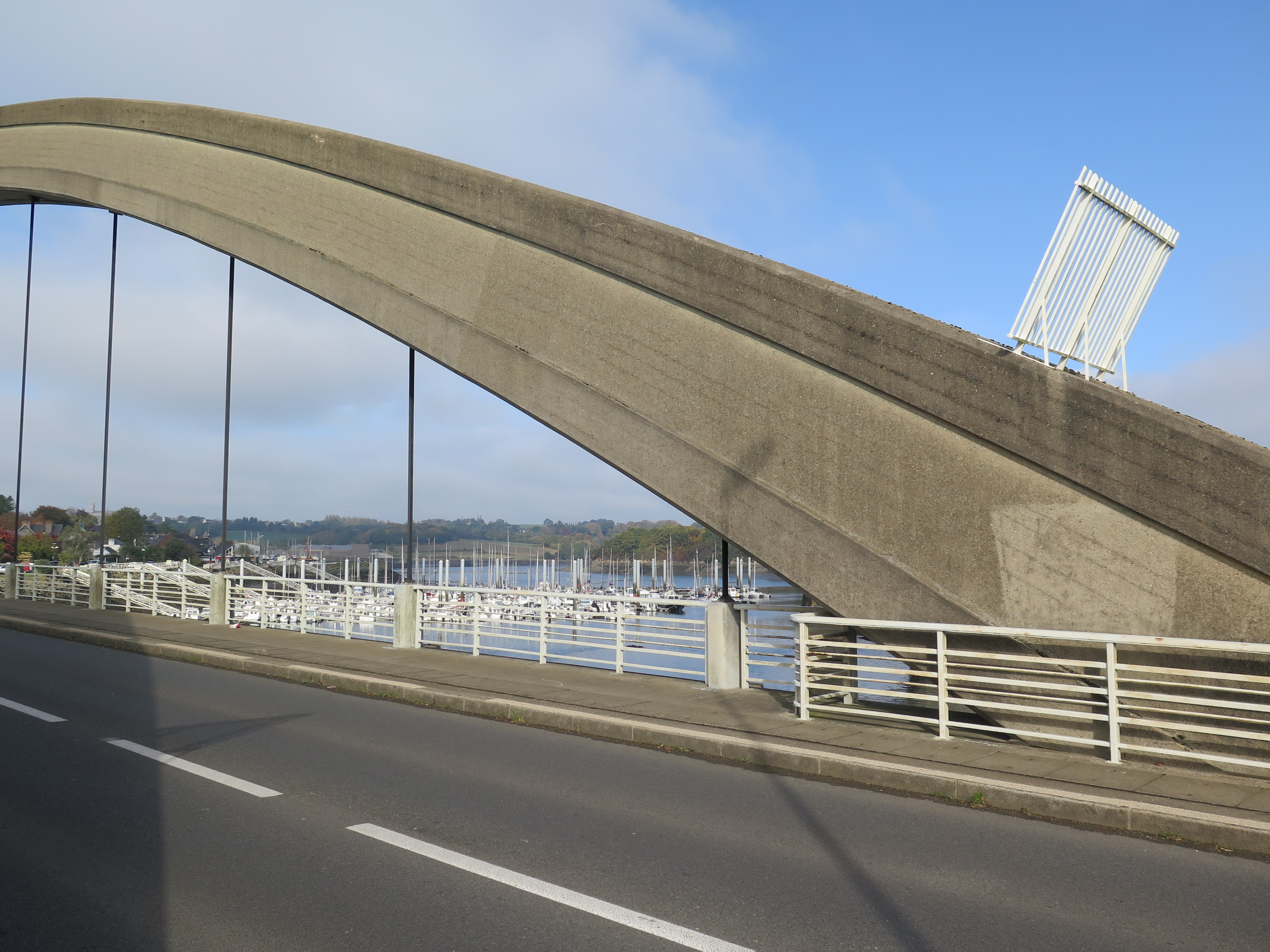 Tréguier : détail du pont Canada, arc en béton armé et suspentes en acierImmatriculation