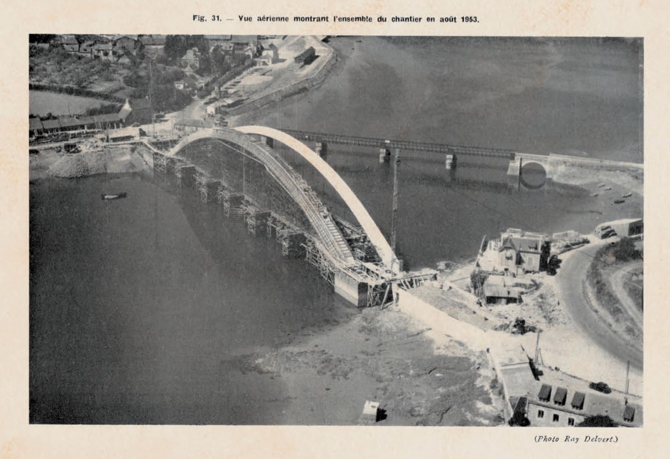 Tréguier : pont Canada, vue aérienne oblique du chantier, août 1953 (source : Travaux, revue mensuelle, n° 245, mars 1955 ; photographie : Ray Delvert)Immatriculation