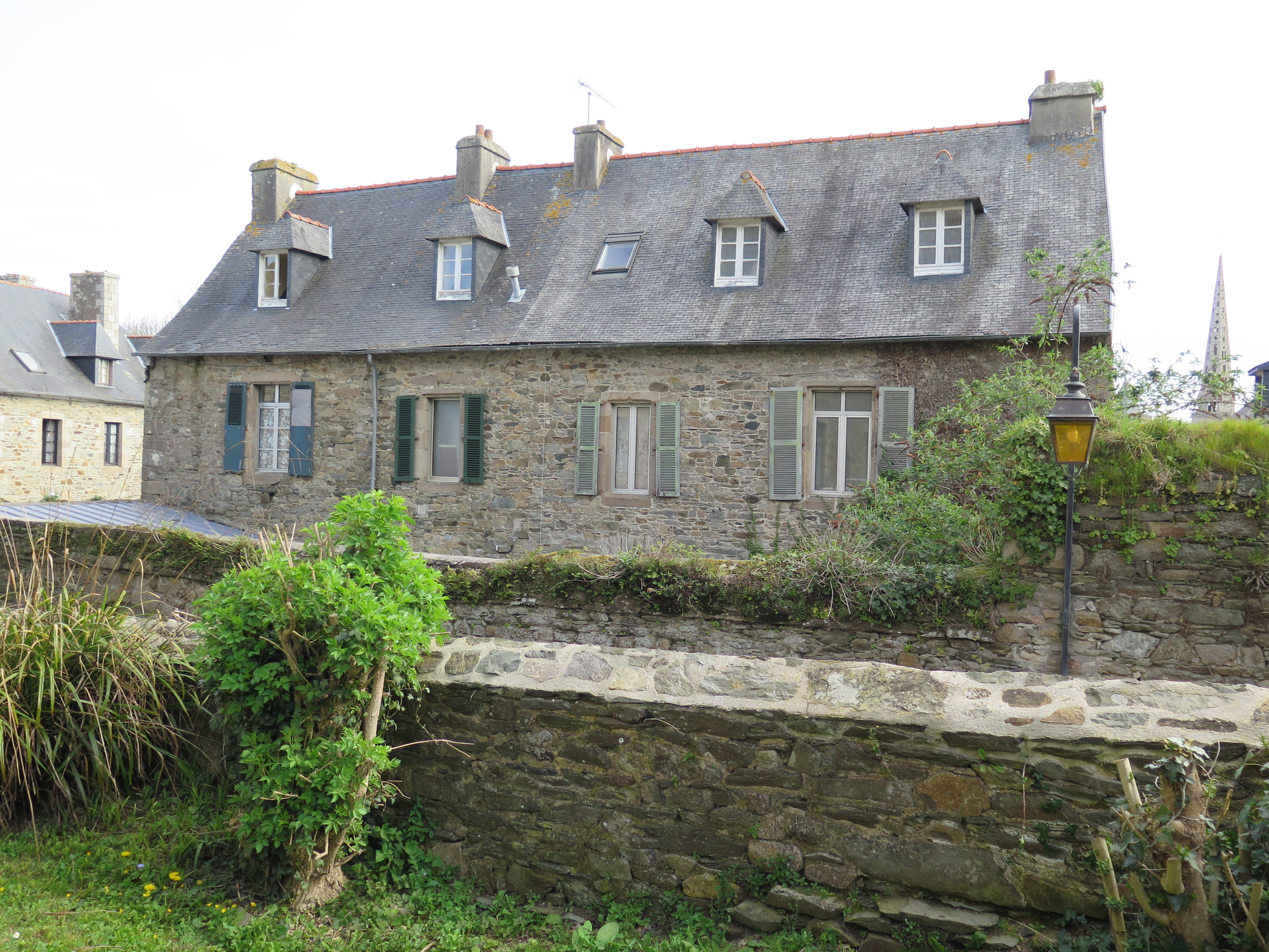 Tréguier, 9 rue des Perdreries (Perderies) : maison dite "Scolasticat", logis principal, élévation ouest précédée d'une avant-cour, état en 2018Immatriculation