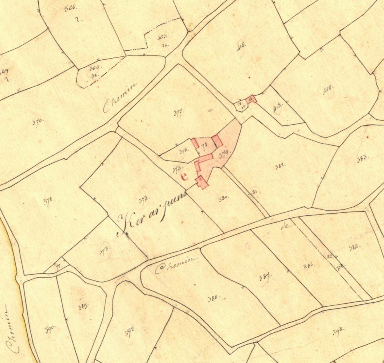 Extrait du cadastre ancien de Minihy-Tréguier, section B2 dite de Saint Renault, 1835 : "Ker ar puns"Immatriculation