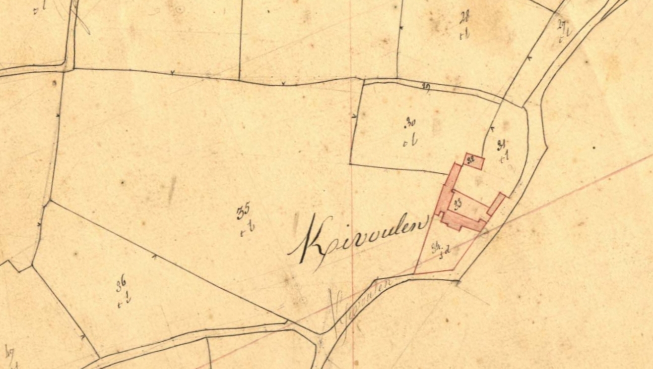 Extrait du cadastre ancien de Minihy-Tréguier, section C1 dite de Kermoal, 1835 : "K[er]ivoulen" [Kerrivoalan]Immatriculation