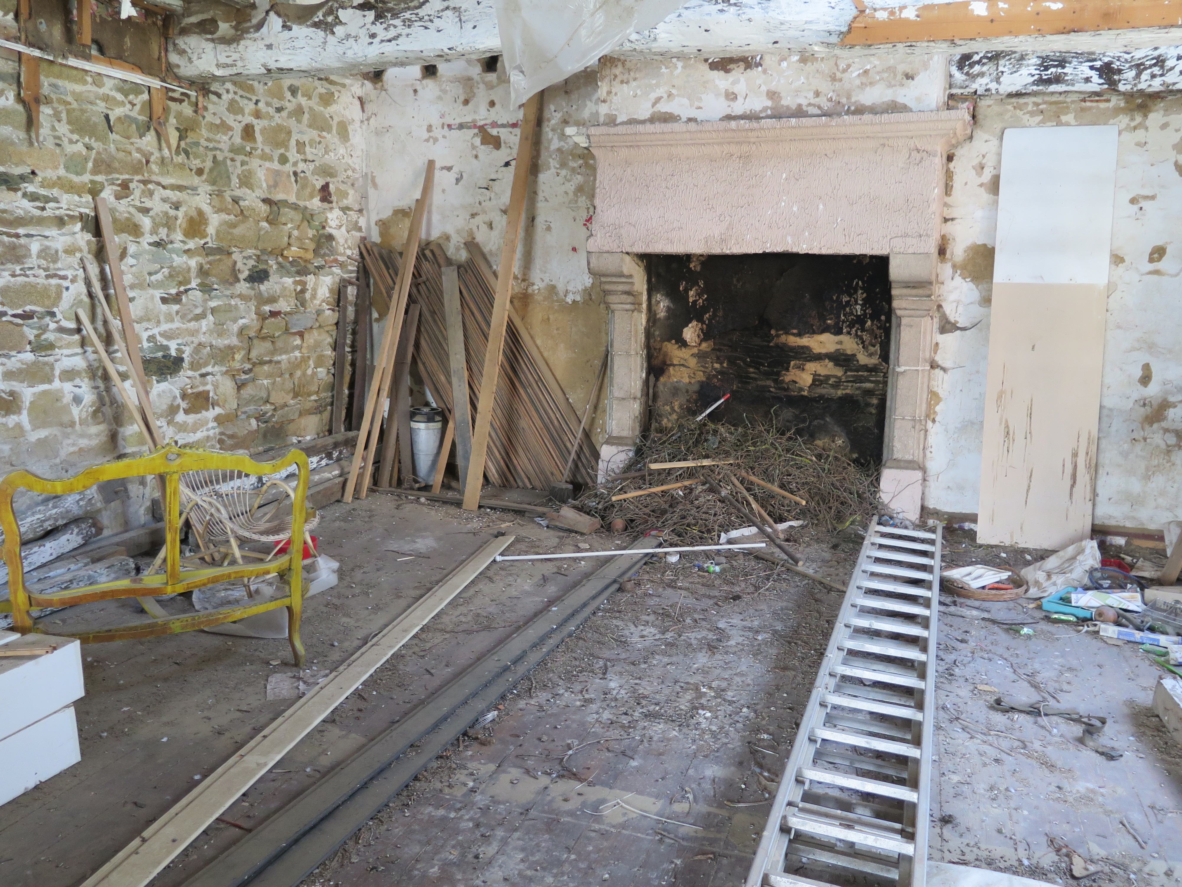 Tréguier, rue Renan - quai du Jaudy (7 place du Général de Gaulle) : maison d'armateur ou de négociant, premier étage, cheminée du pignon ouest (visite réalisée le 11 avril 2017 avec la mairie de Tréguier)Immatriculation