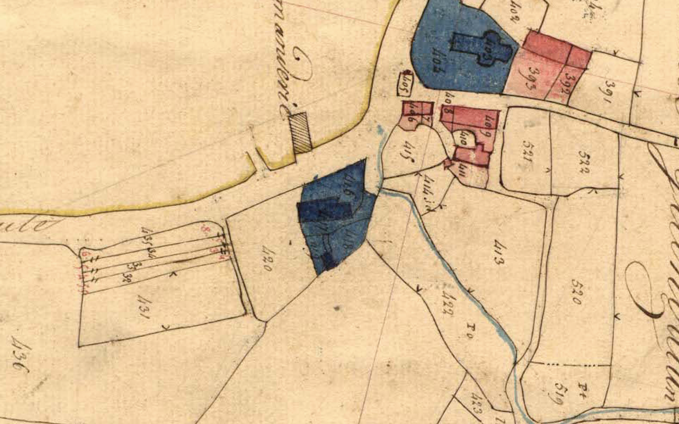 Presbytère. Extrait du cadastre ancien de Vildé-Guingalan, Section B de Coavou, deuxième feuille (1835).Immatriculation