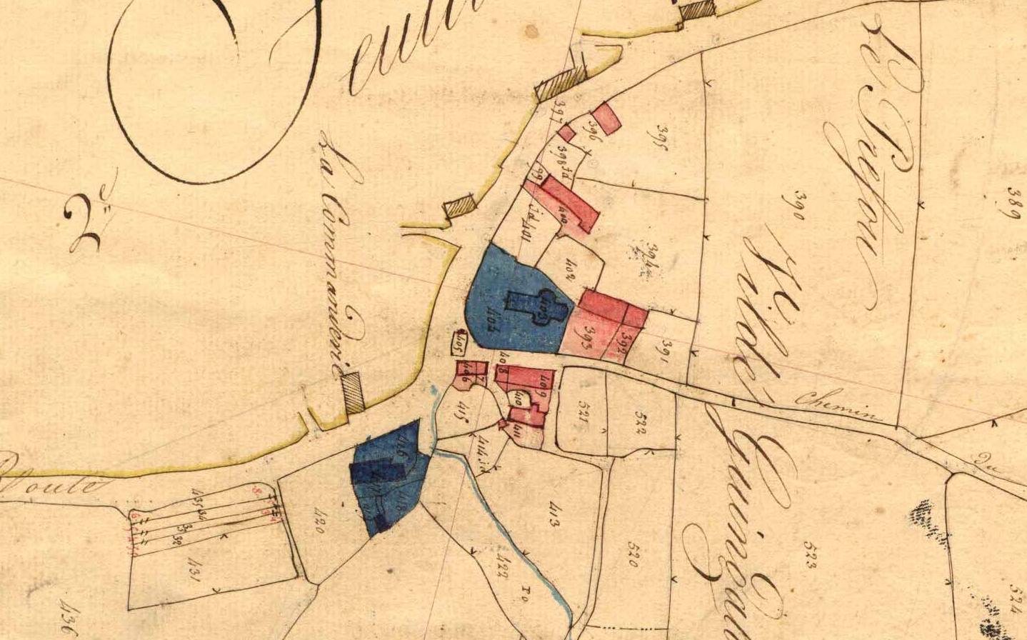 L'église. Extrait du cadastre ancien de Vildé-Guingalan, Section B dite de Coavou, deuxième feuille (1835).Immatriculation