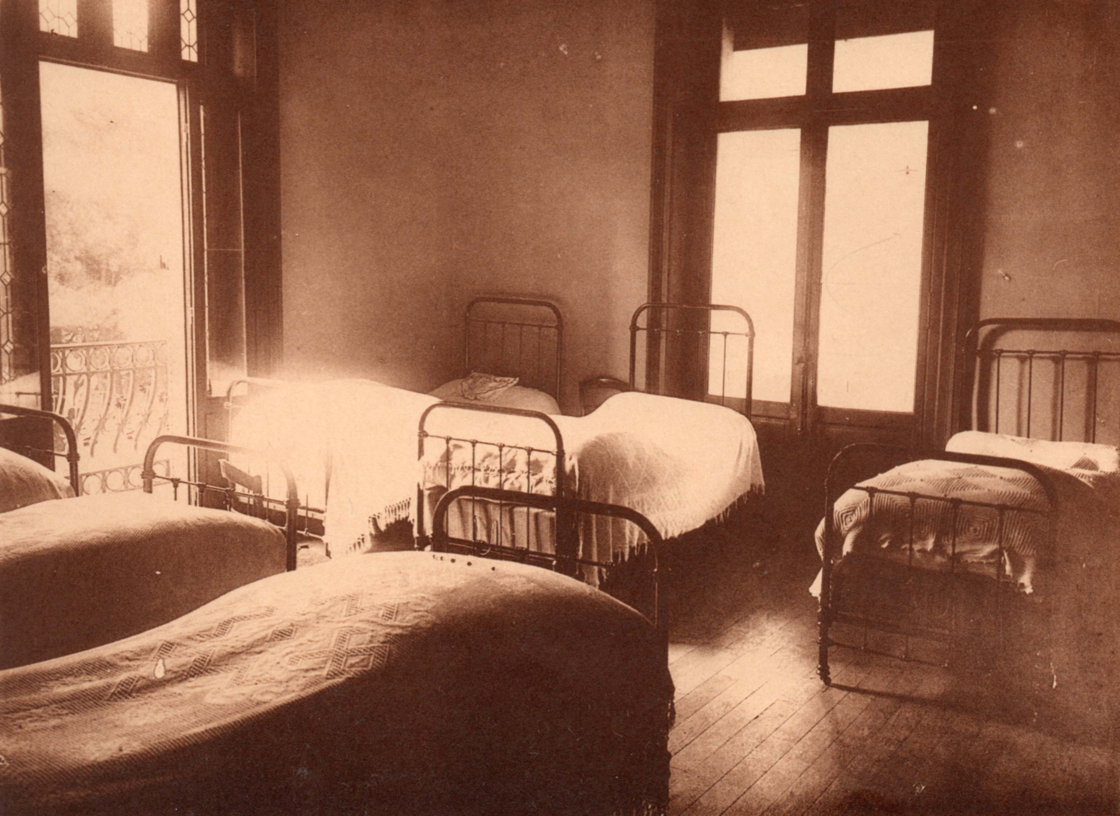 Un dortoir du collège de jeunes filles dans les années 1920.Immatriculation