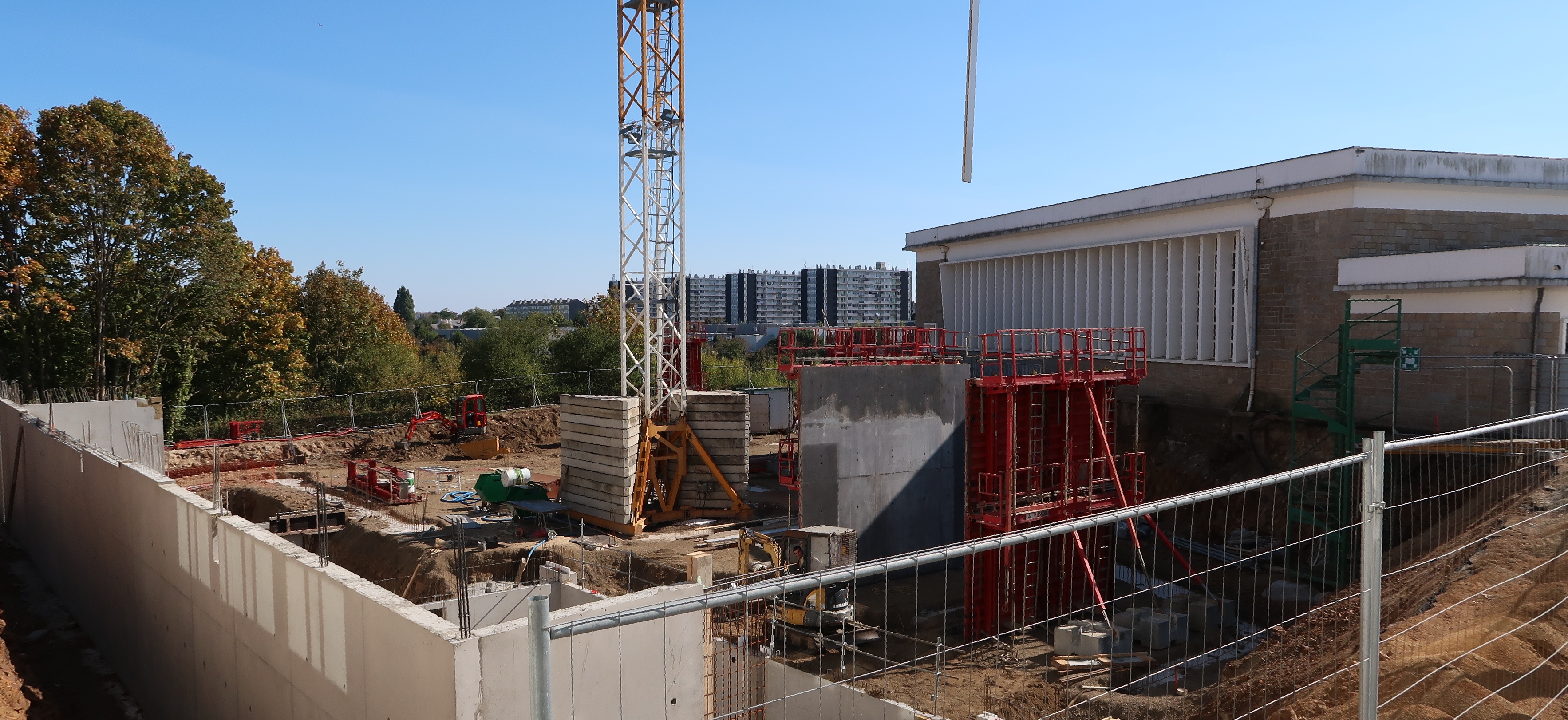 Le nouveau réfectoire en cours de construction. A l'arrière plan le gymnase des années 1960.Immatriculation