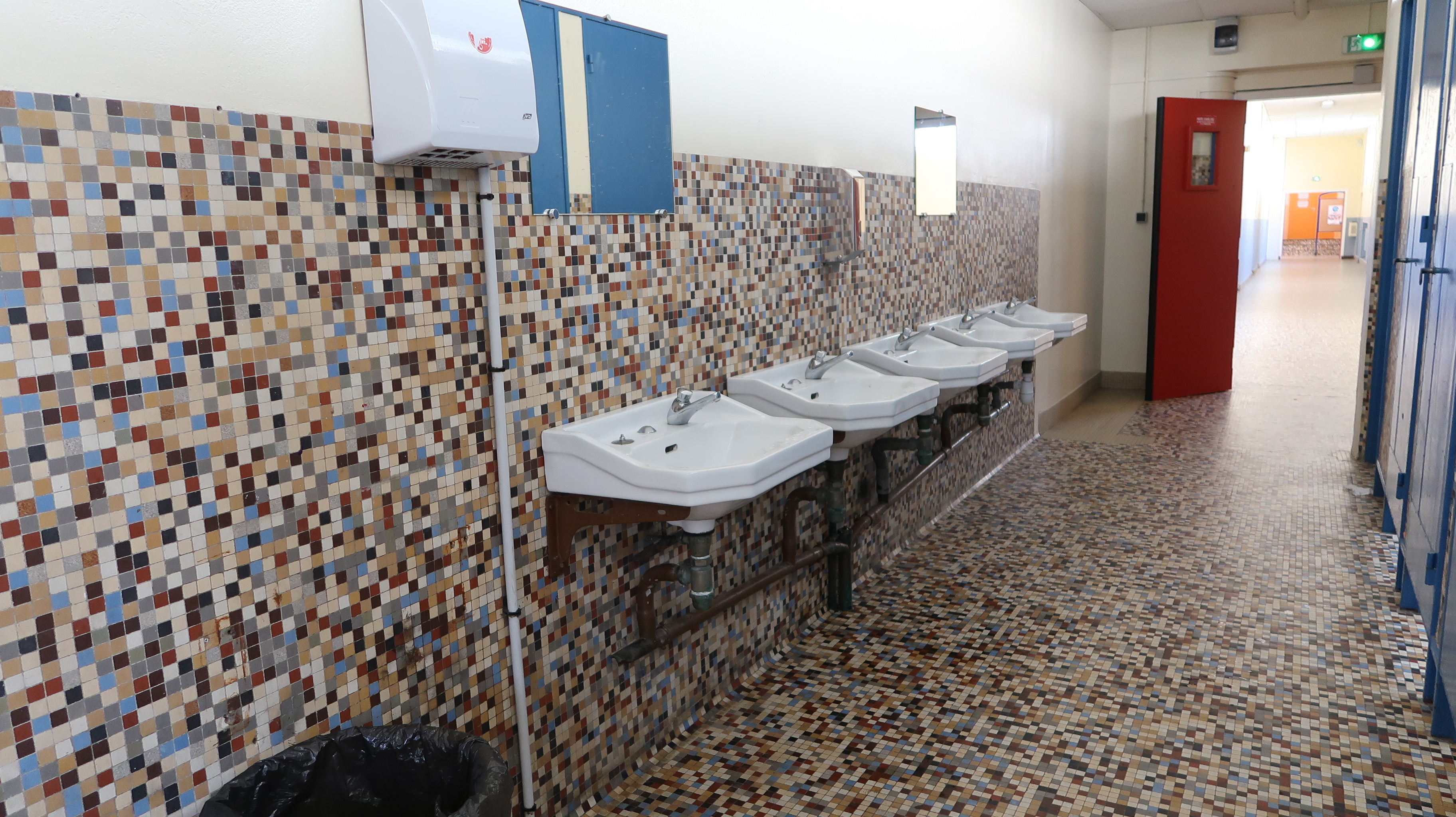 Lavabos et sanitaires aménagés dans un couloir du bâtiment A.Immatriculation
