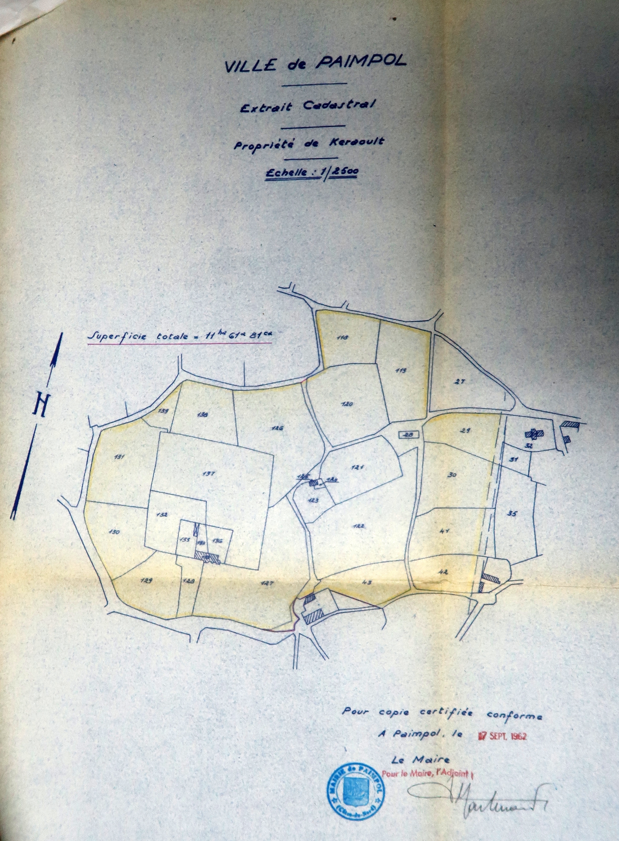 Ville de Paimpol. Extrait cadastral. Propriété de Keraoult. Certifié conforme le 17 septembre 1962.Immatriculation