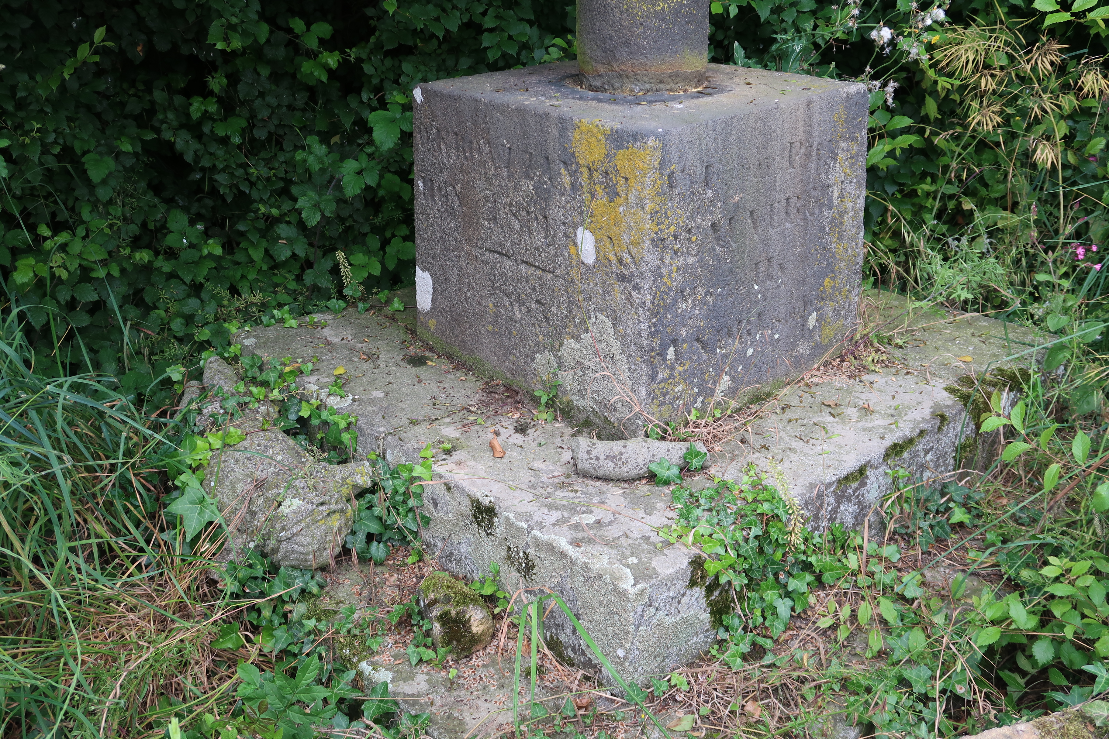 Kerarhant : croix de chemin datée de 1863, détail du socleImmatriculation