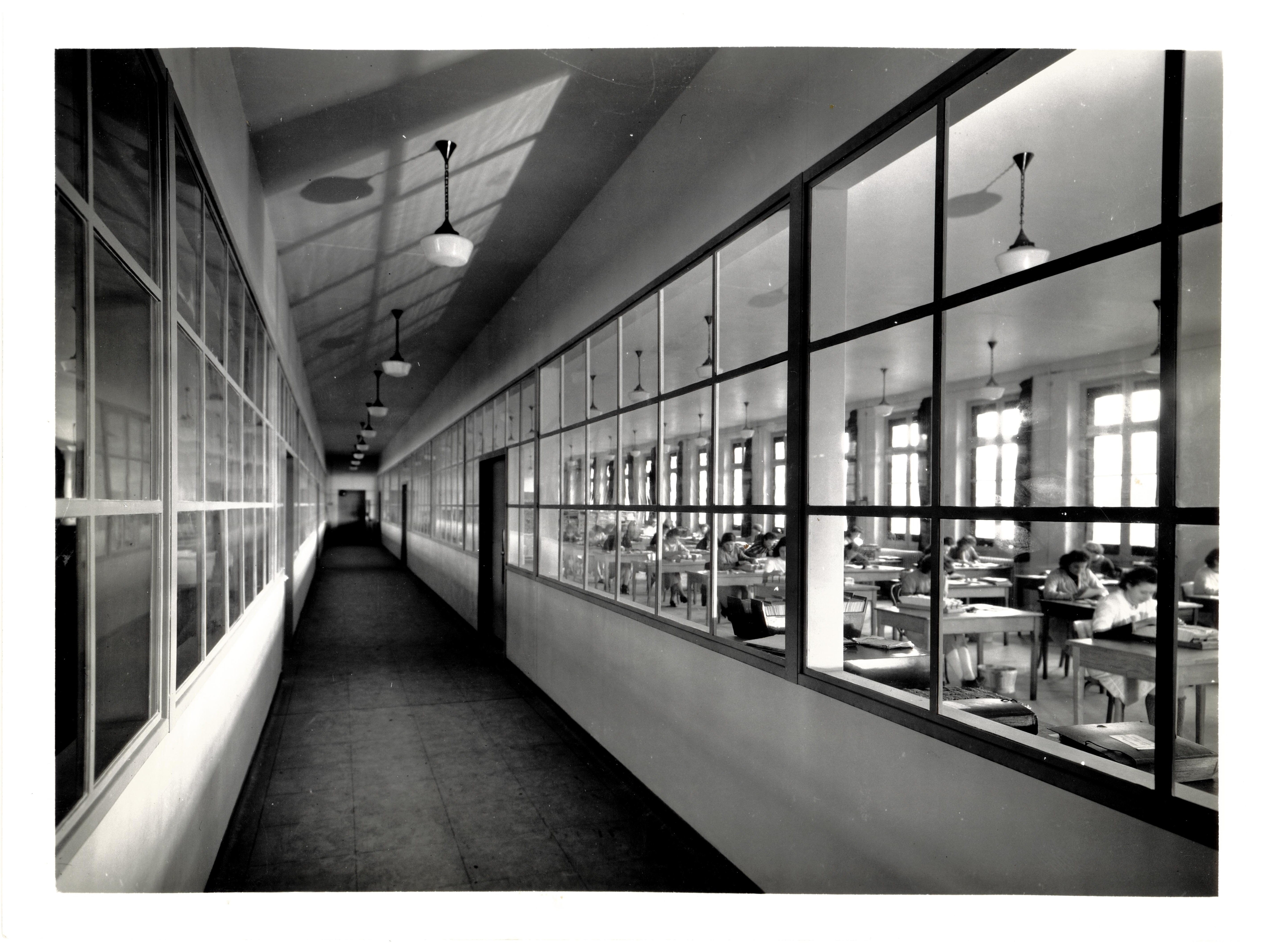 Aile arrière est, 1er étage, le couloir vitré central , le centre de vérification des tirages, 1943Immatriculation
