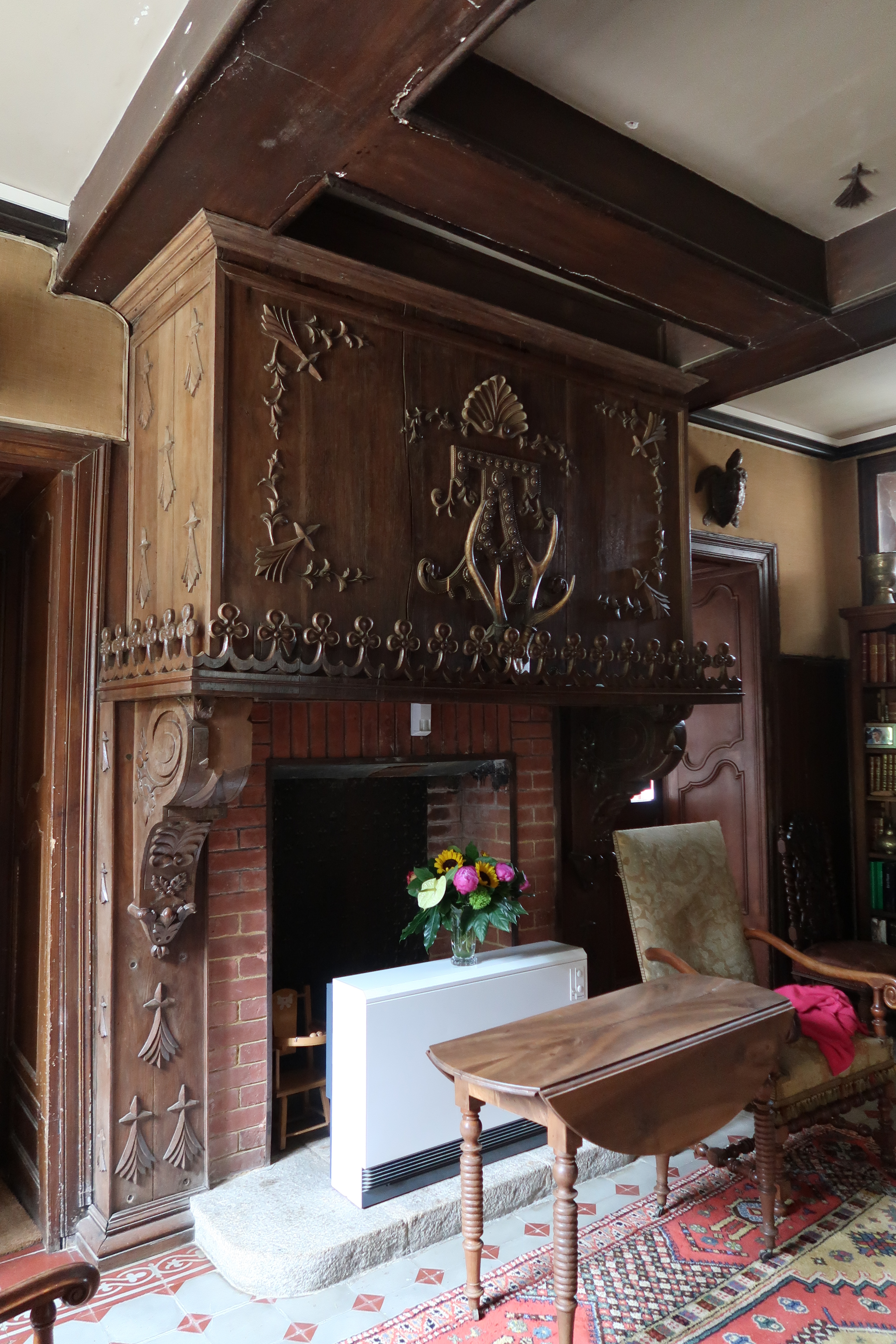 Grande cheminée au décor de chasse et d'herminesImmatriculation