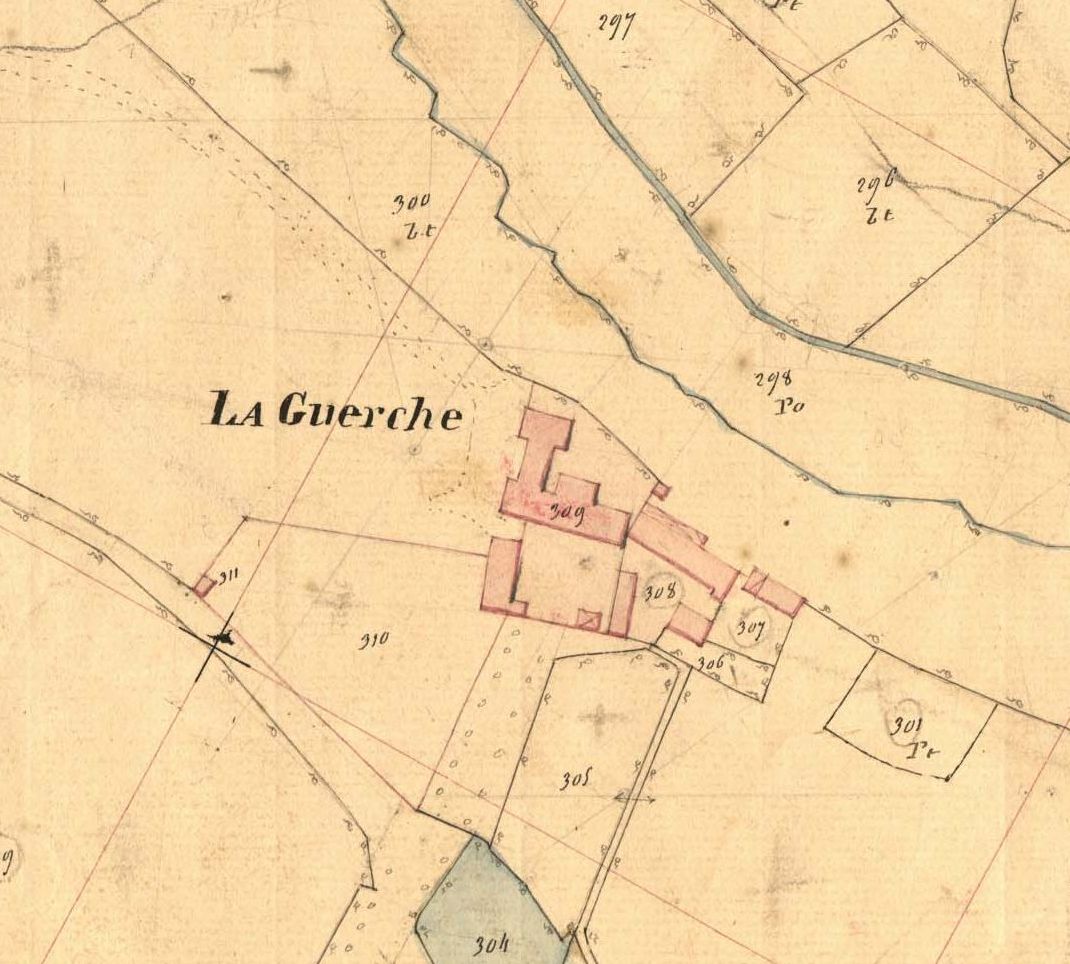 Extrait du cadastre de 1844, emplacement de l'ancien manoir et construction en cours du nouveau logis, aile arrièreImmatriculation