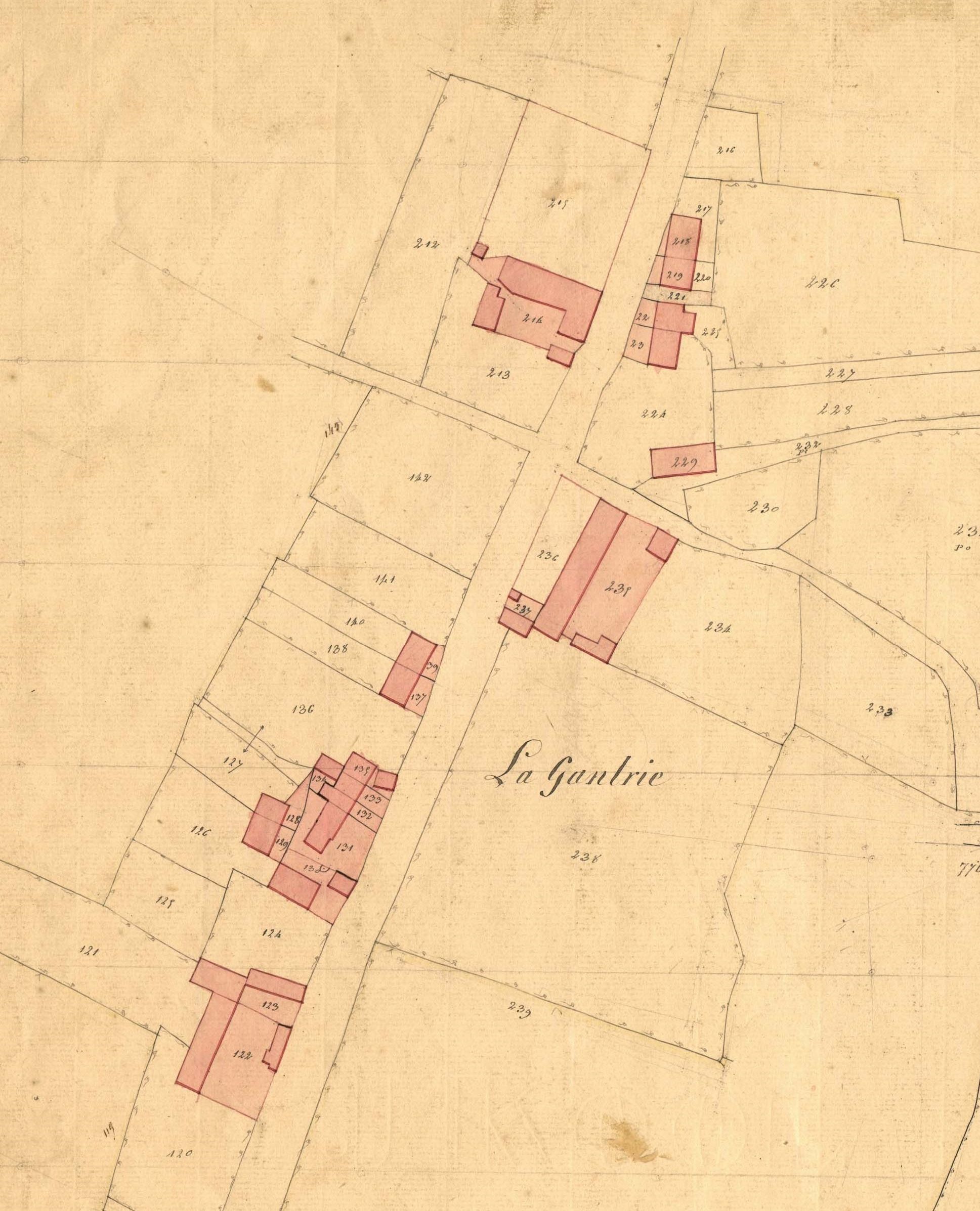 Extrait du cadastre de 1844 section A La GantrieImmatriculation