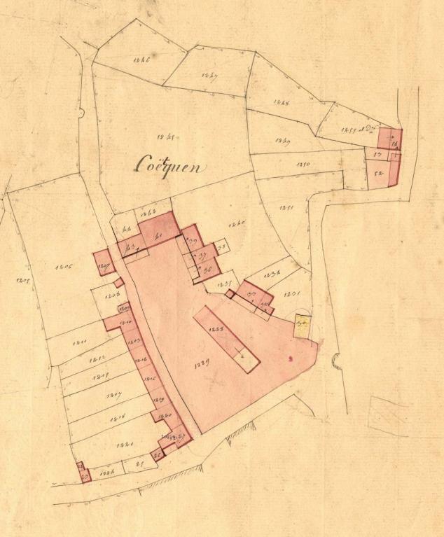 Extrait du cadastre de 1844, le village de CoëtquenImmatriculation
