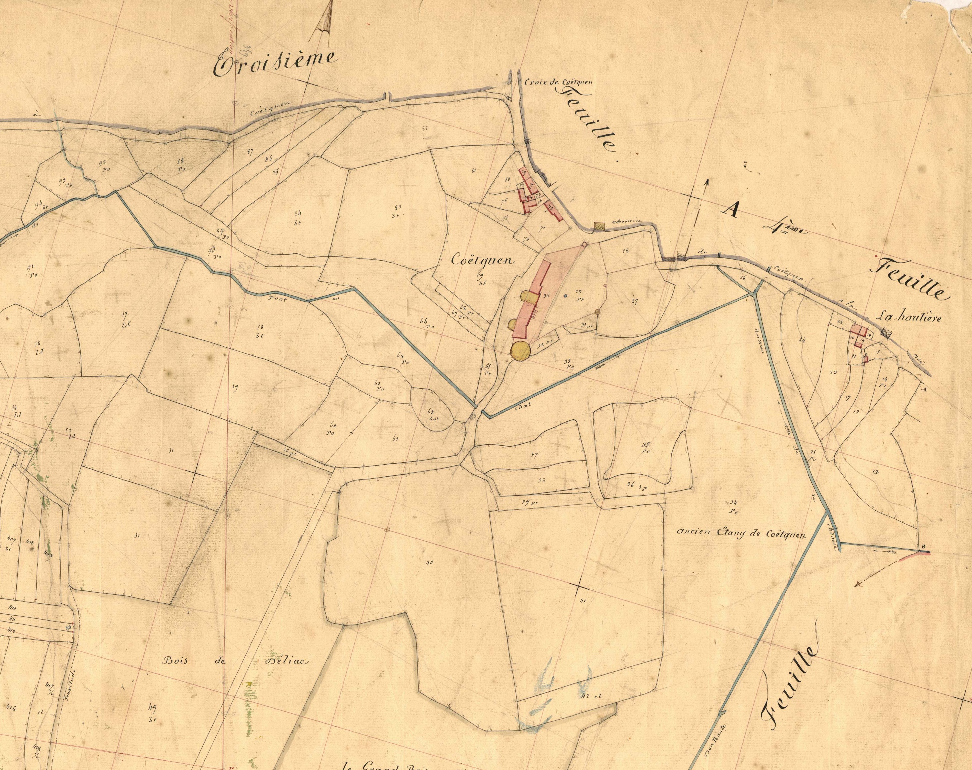 Extrait du cadastre de 1844, le château de CoëtquenImmatriculation