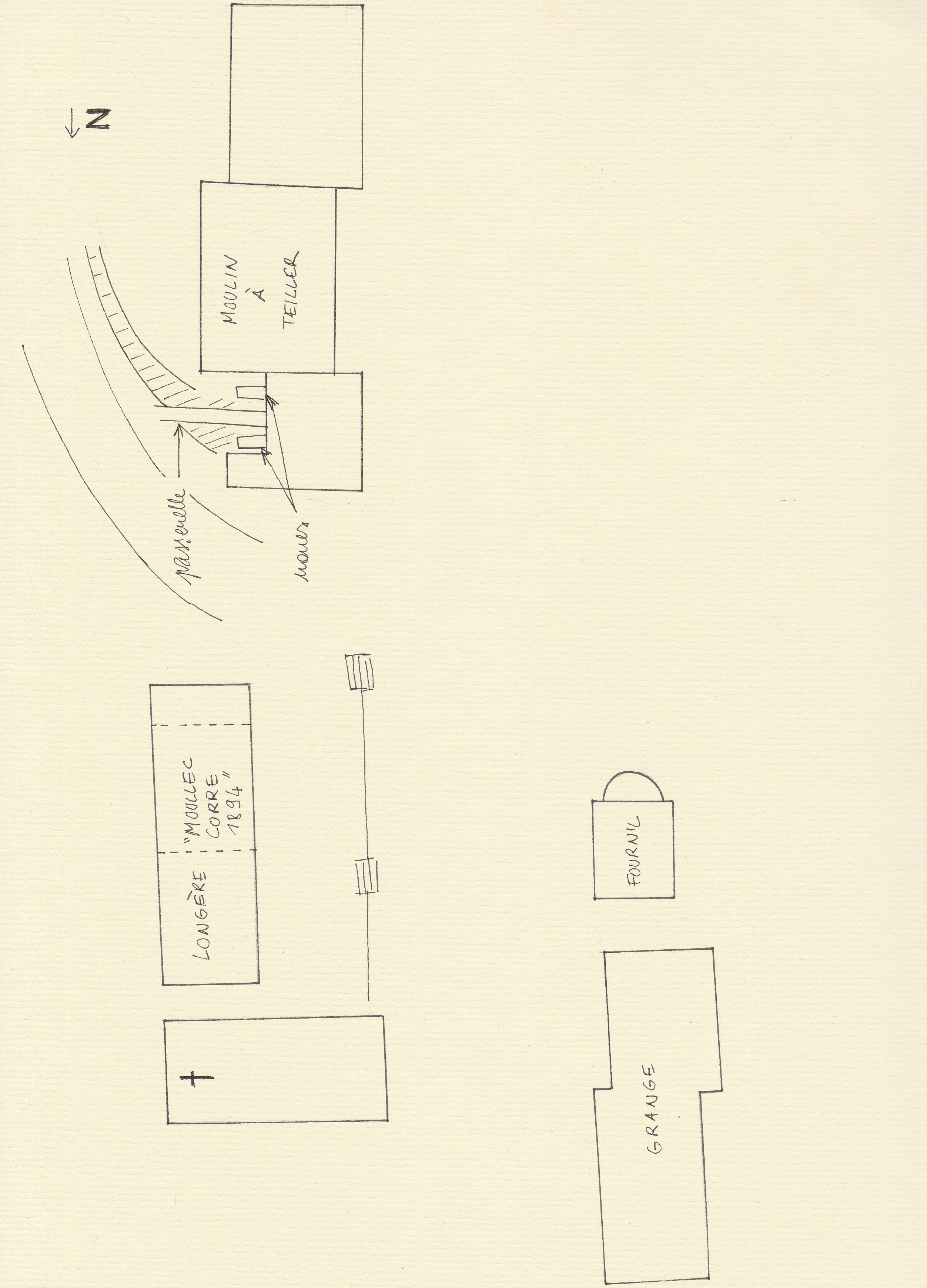 Plan du hameau du Palacret : le moulin et les autres bâtimentsImmatriculation