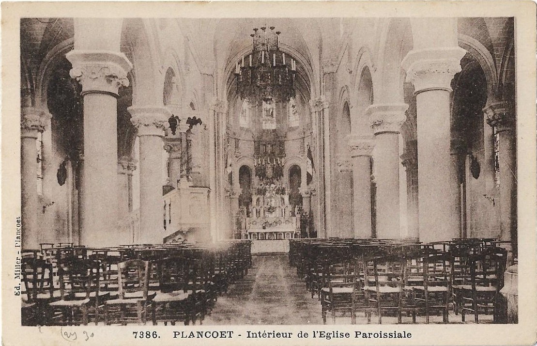 Carte postale de l'intérieur de l'église Saint-Sauveur, vue en direction du choeur (état début 20e siècle).Immatriculation