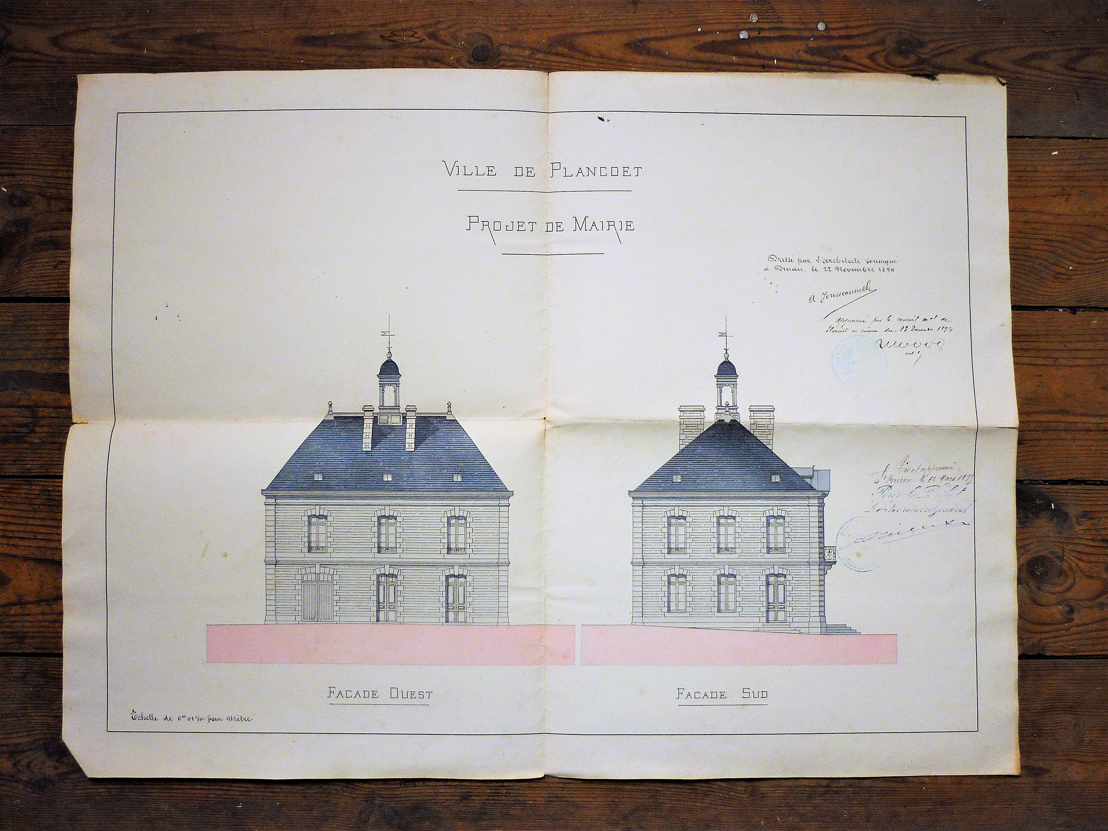 Façade Ouest et Sud du projet de la nouvelle Mairie de 1894.-