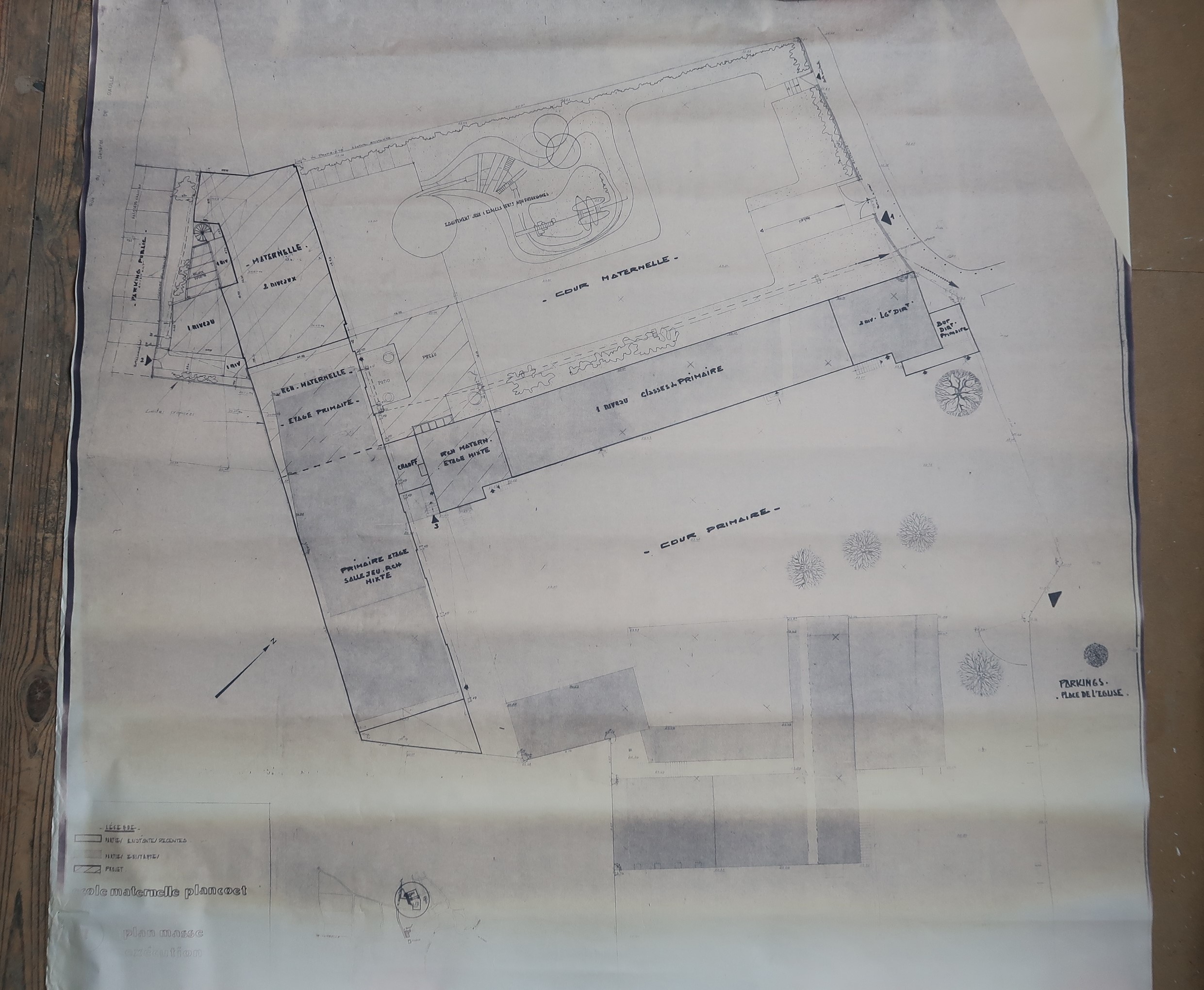 Projet d'agrandissement de l'école maternelle avec l'ajout d'une aile et d'une cour de récréation au nord, après 1978 (date de création de l'agence LDG).Immatriculation