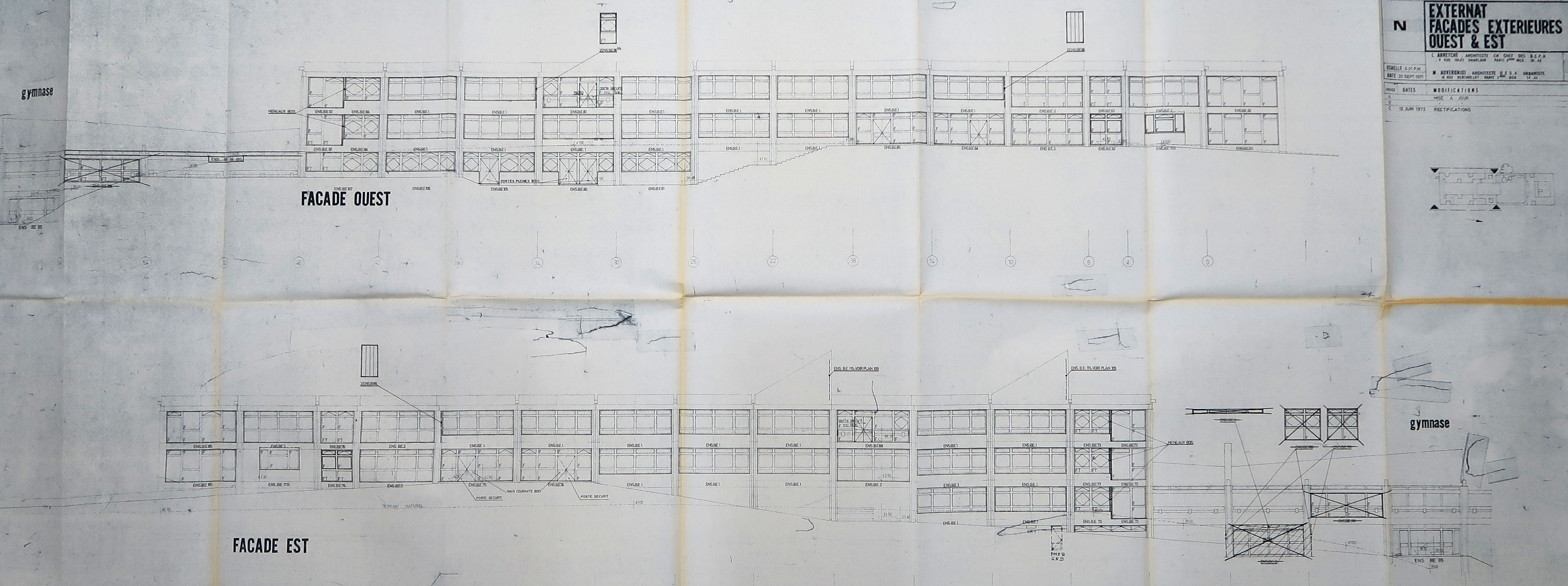 Externat. Façades extérieures ouest et est (1972)Immatriculation
