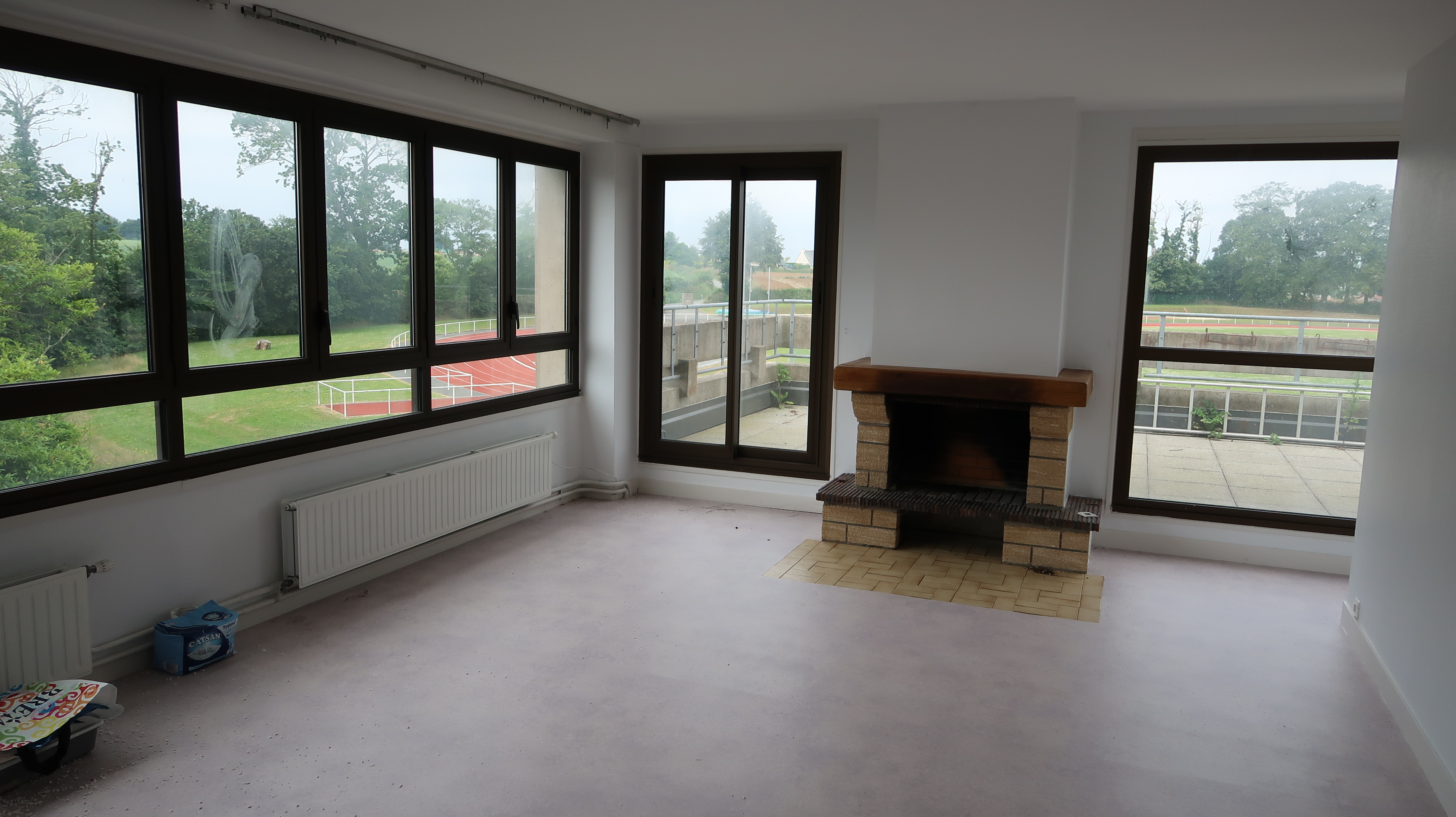 Logement du proviseur : cheminée et verrière du salon.Immatriculation