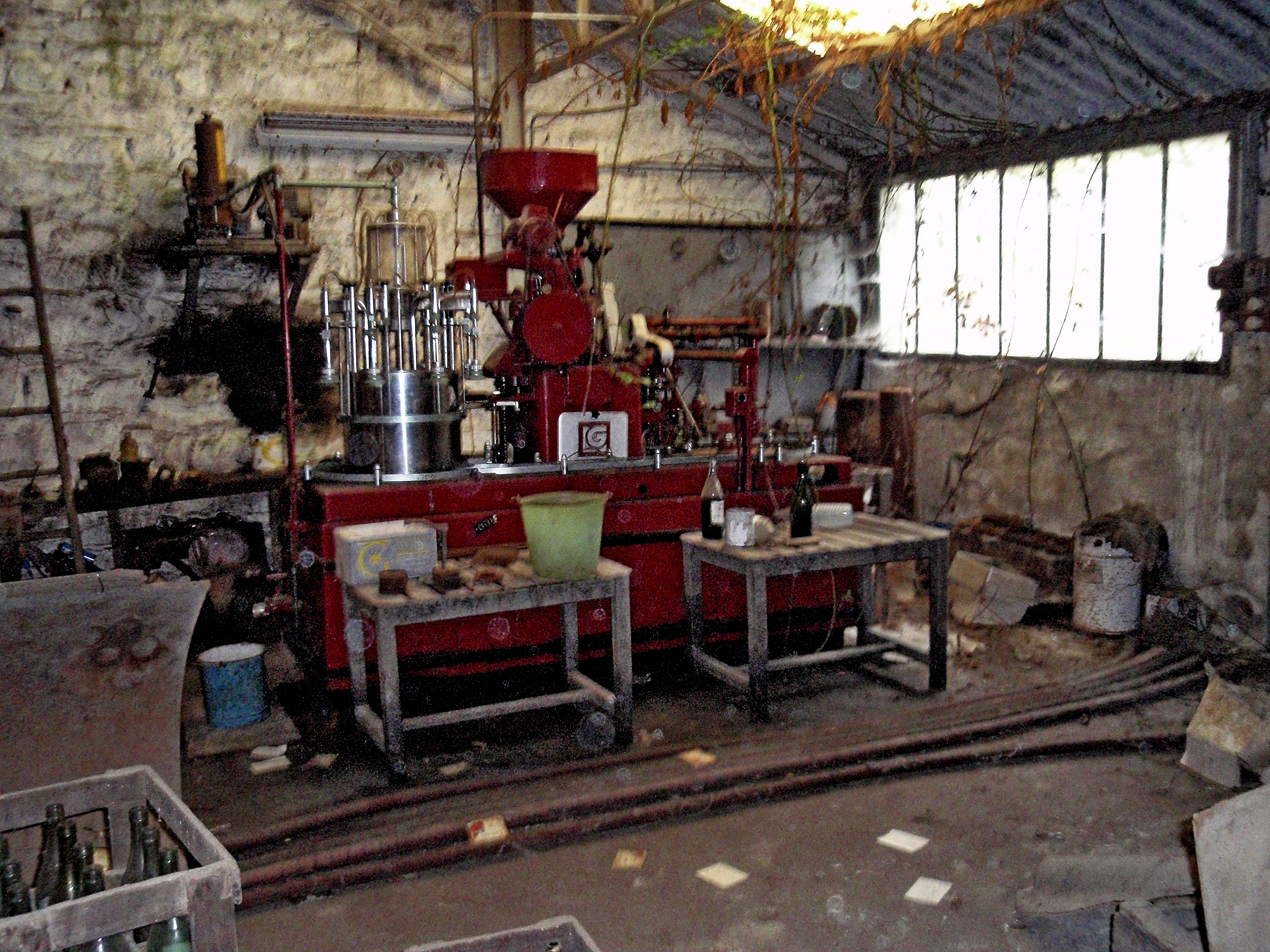 Etablissement Ansquer, 6 rue des Perdreries (Perderies) à Tréguier, machine à embouteiller avant ferraillage, état en 2012Immatriculation