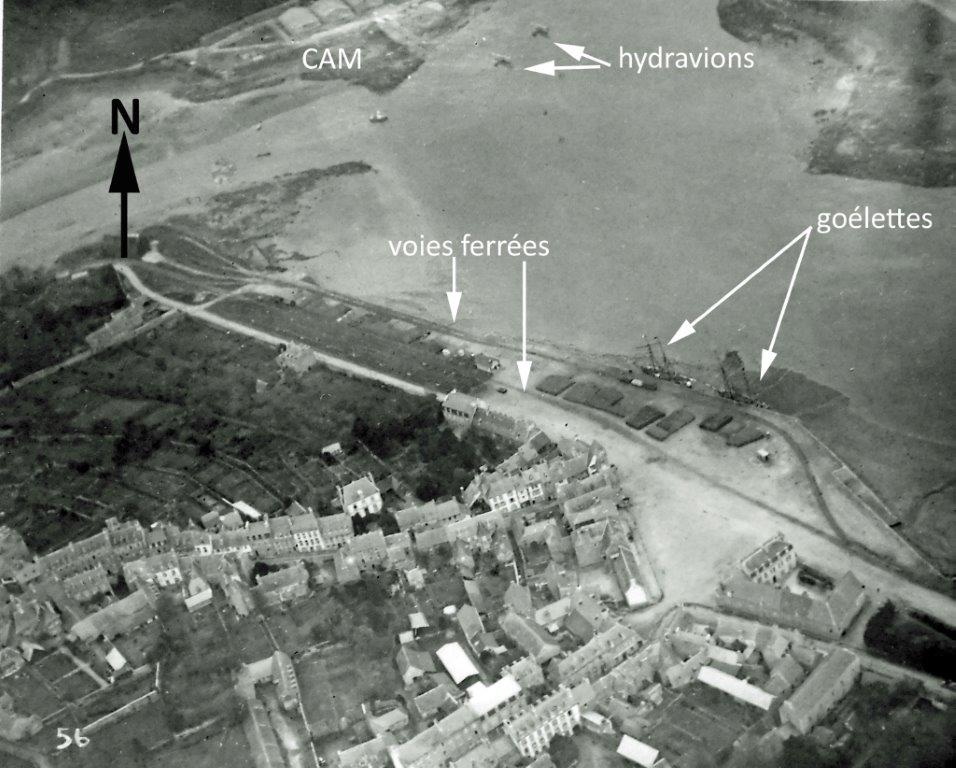 Vue aérienne oblique du port de Tréguier et du centre d'aviation maritime de Tréguier côté Plouguiel (source : United States Navy, annotations par Alain Bohée)Immatriculation