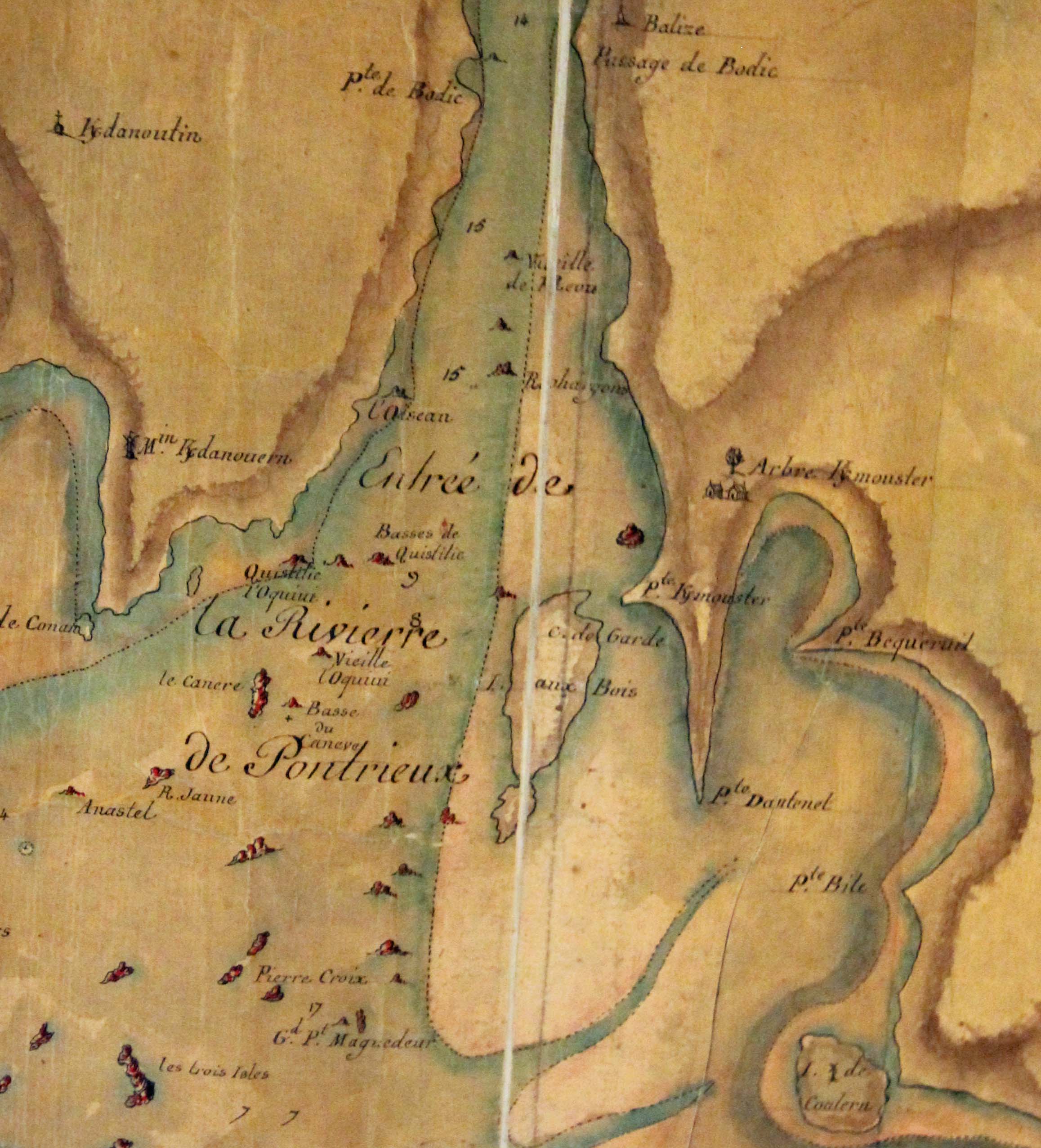 Plan de l’île de Bréhat, des entrées des rivières de Pontrieux de Tréguier et leurs environs. Le tout comme il paraît à basse mer dans les grandes marées. 1750 (l’échelle graphique est en toises) (source : Service historique de la Défense, Vincennes)Immatriculation