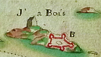 Agrandissement du dessin de l’île à Bois extrait de la carte de 1745 (source : Service historique de la Défense, Vincennes)Immatriculation
