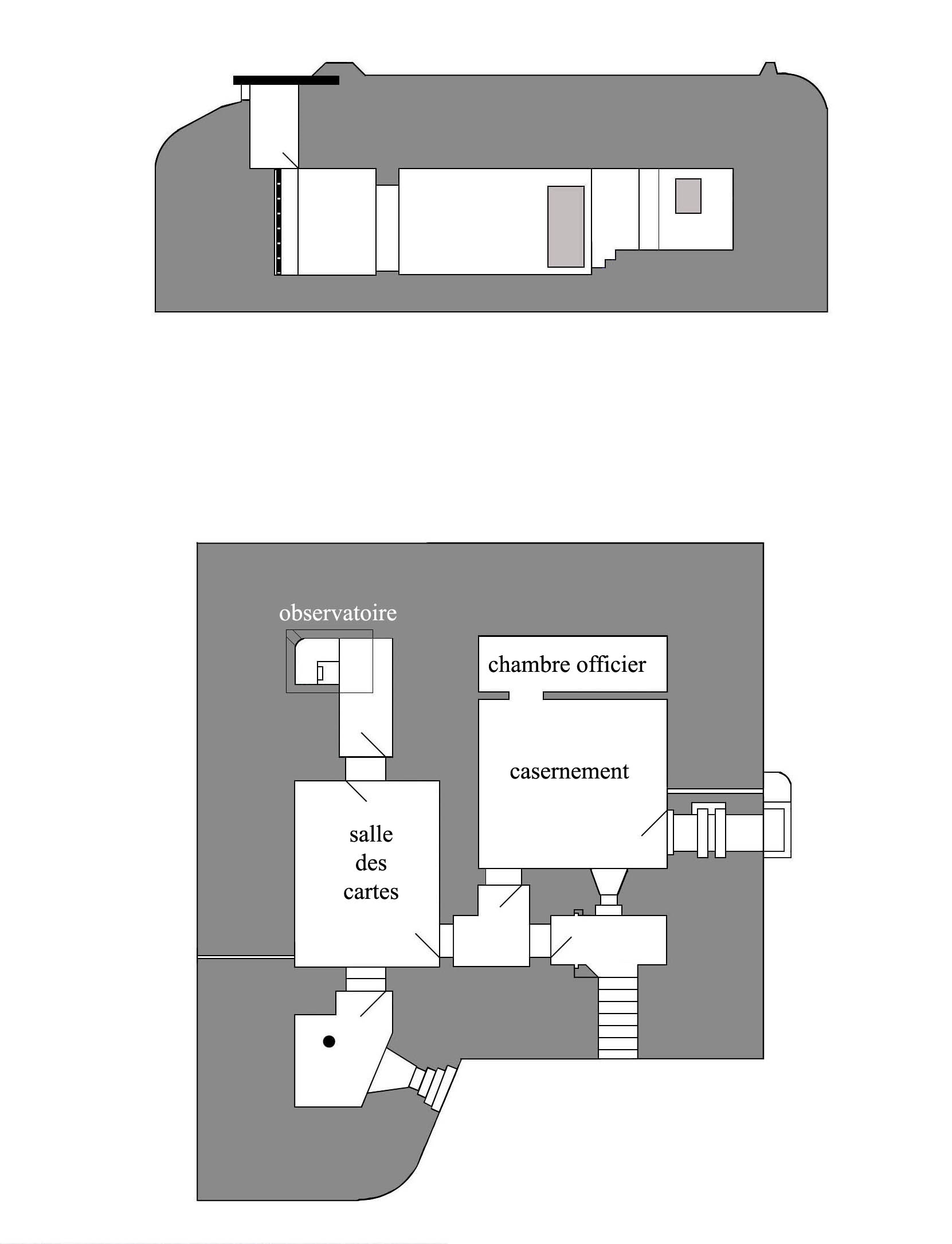 Observatoire d’artillerie type 627, avec un toit blindé et une caponnière (dessin : Alain Bohée)Immatriculation