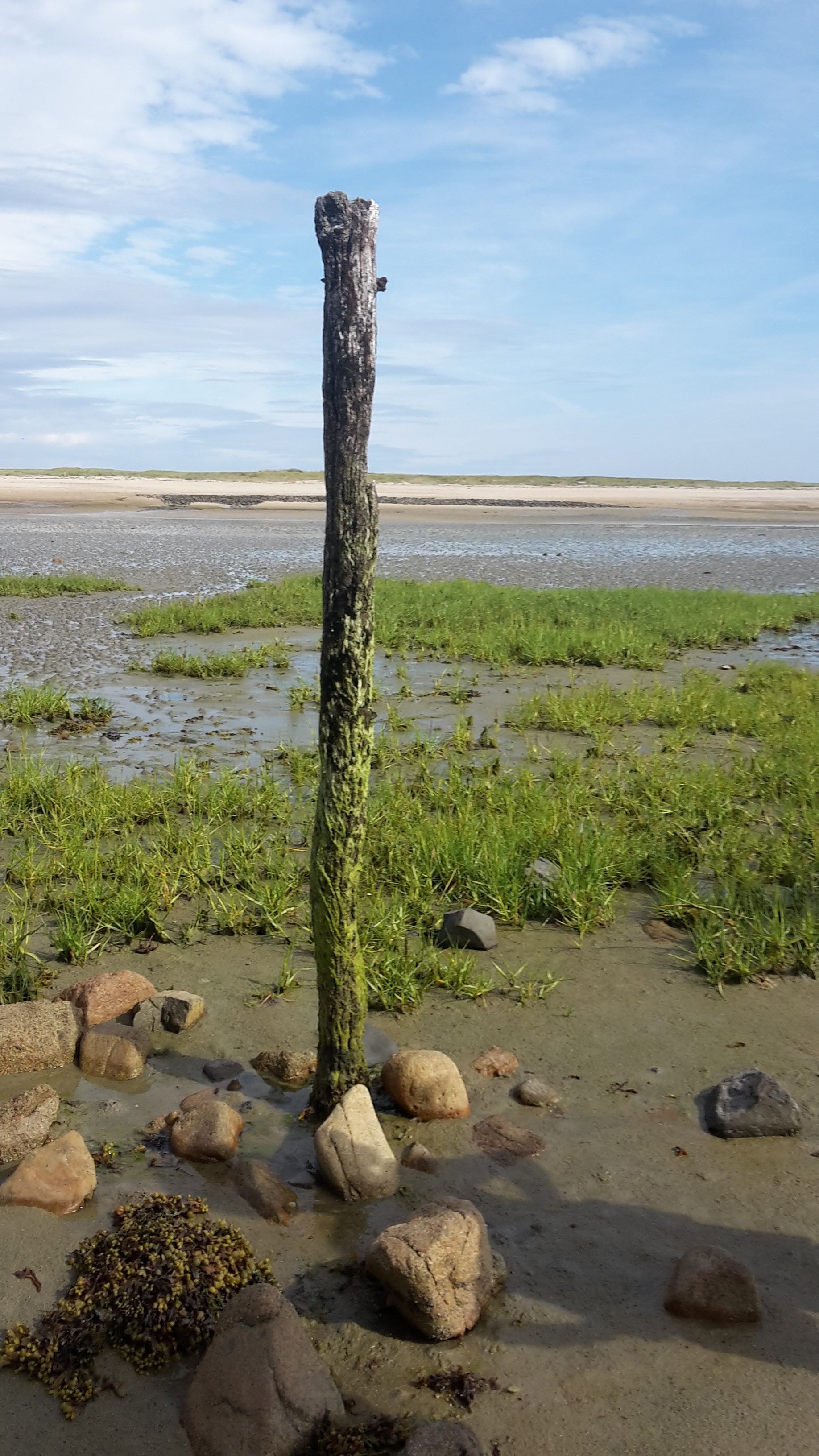 Le pieu en bois servant autrefois d’amarrage pour un bateau goémonier dans la petite grève. Il permet également de mesurer la hauteur de la maréeImmatriculation