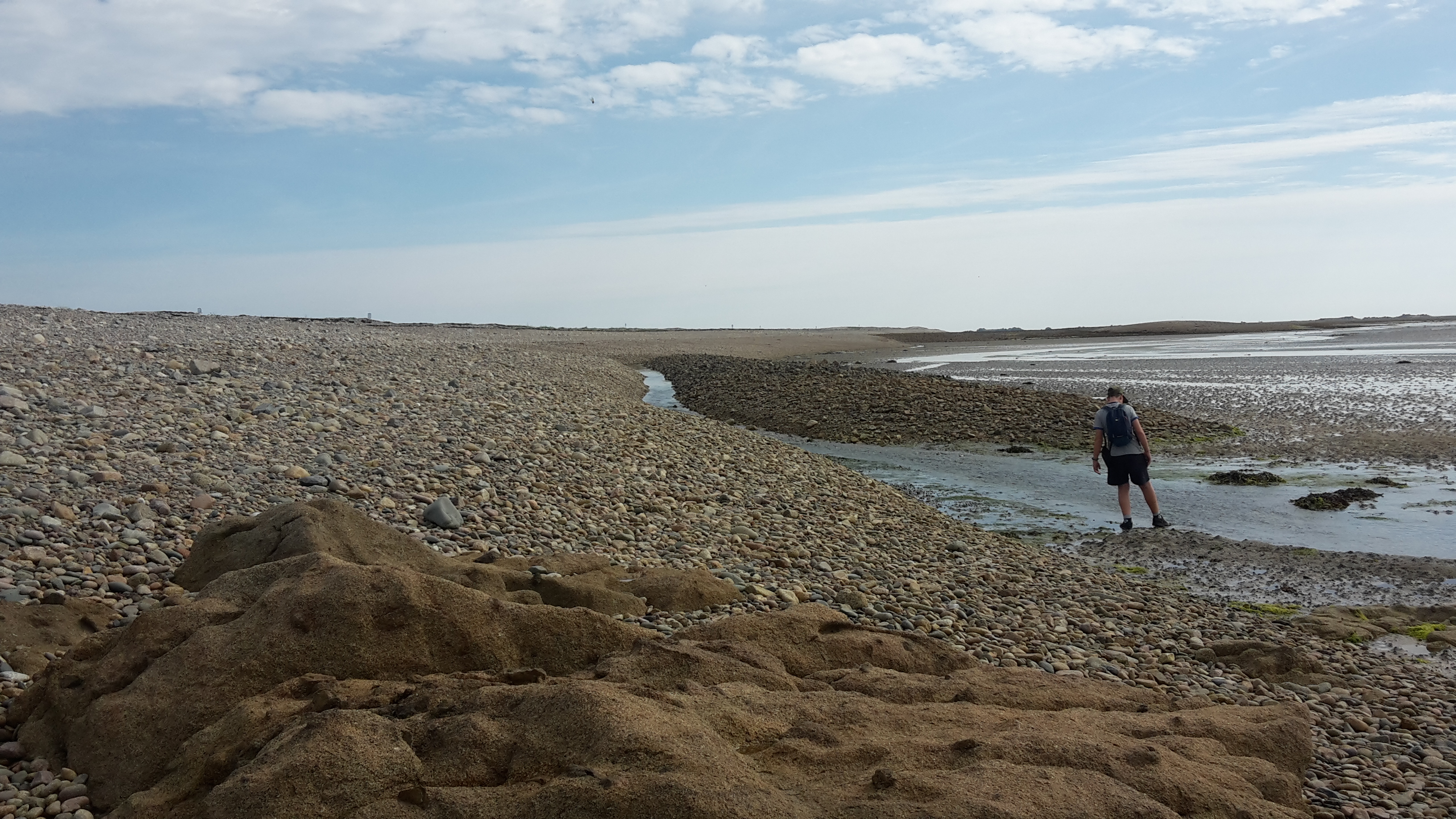 Vue du cordon de galets artificiels parallèle au Sillon dans la petite grève, 2018Immatriculation