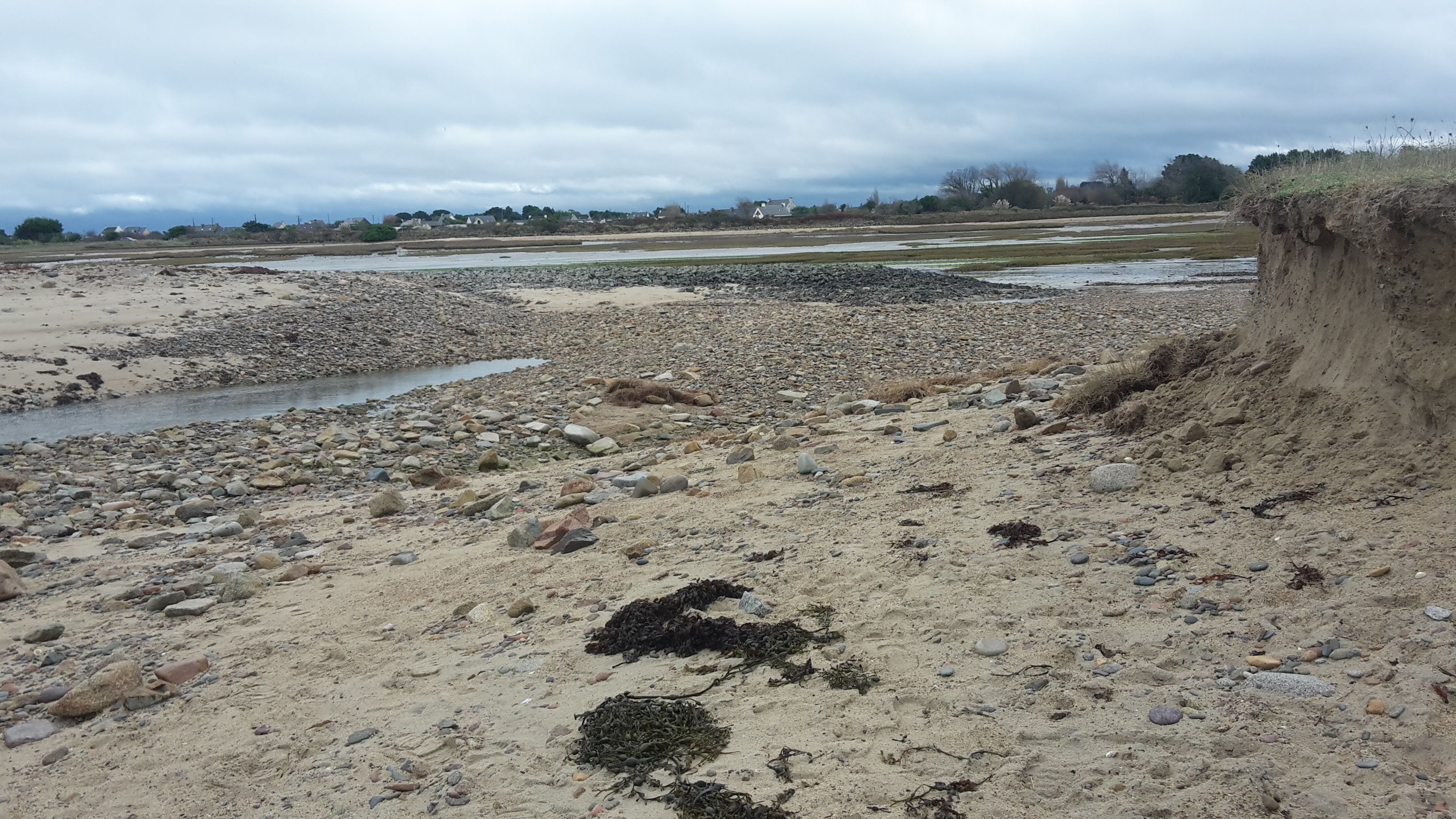 Vue de la petite grève depuis le Sillon de Talbert, à marée basseImmatriculation