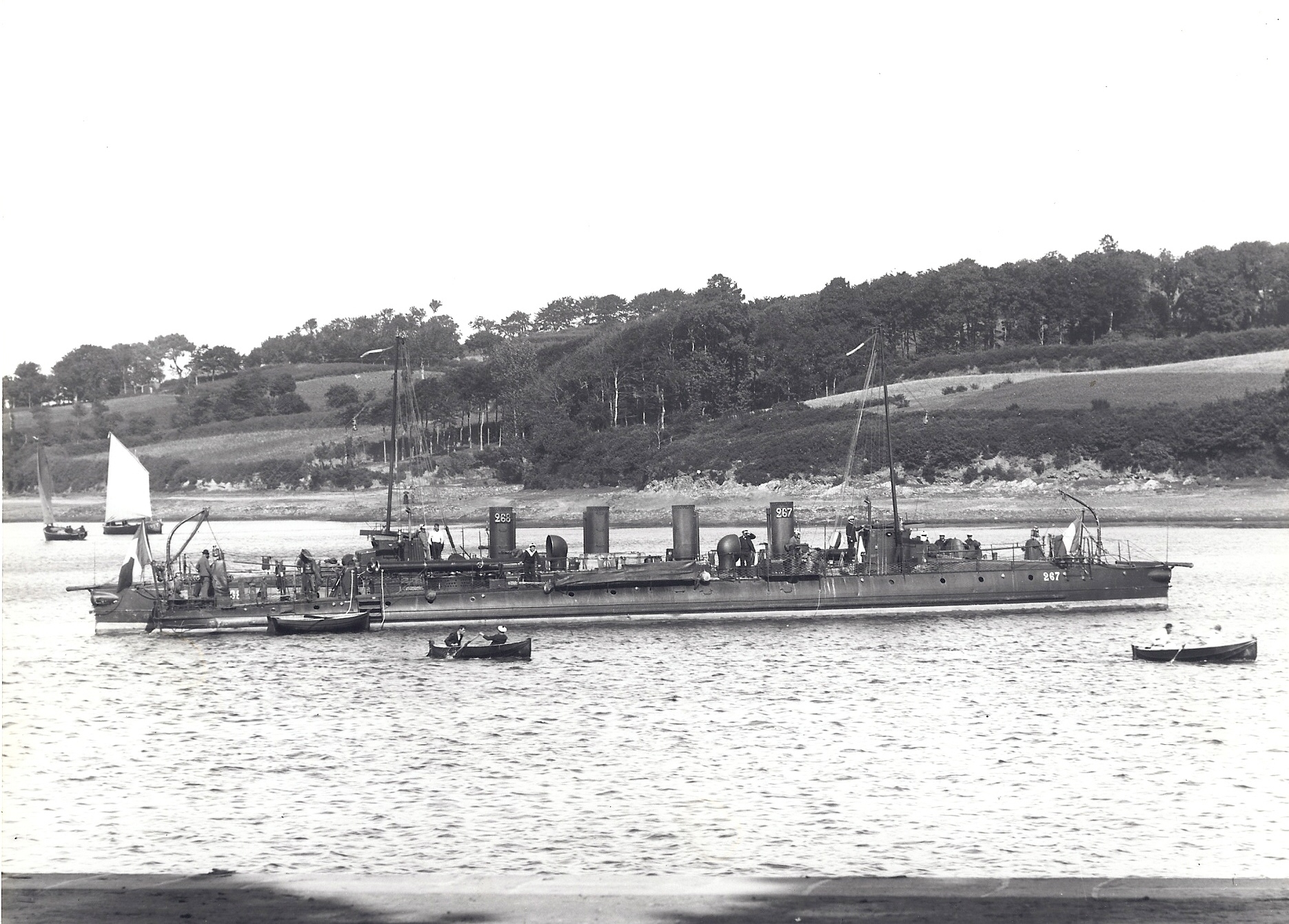 Jour de régates, deux torpilleurs devant l’anse de Durzunel, 2 canots "Berthons" avec matelots à la rameImmatriculation