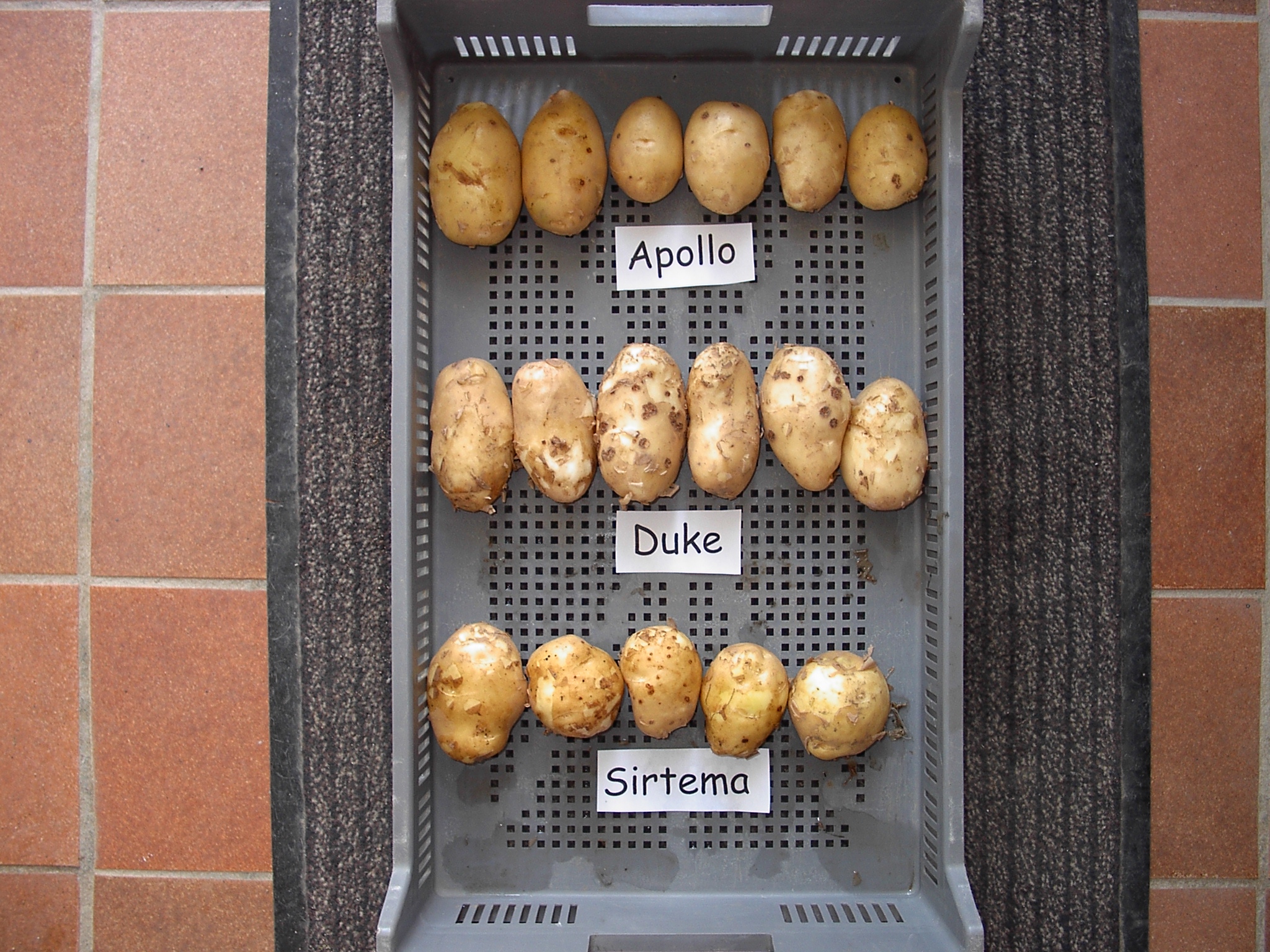 Différentes variétés de pommes de terre : "Apollo", "Duke" et "Sirtema" (collection particulière)Immatriculation