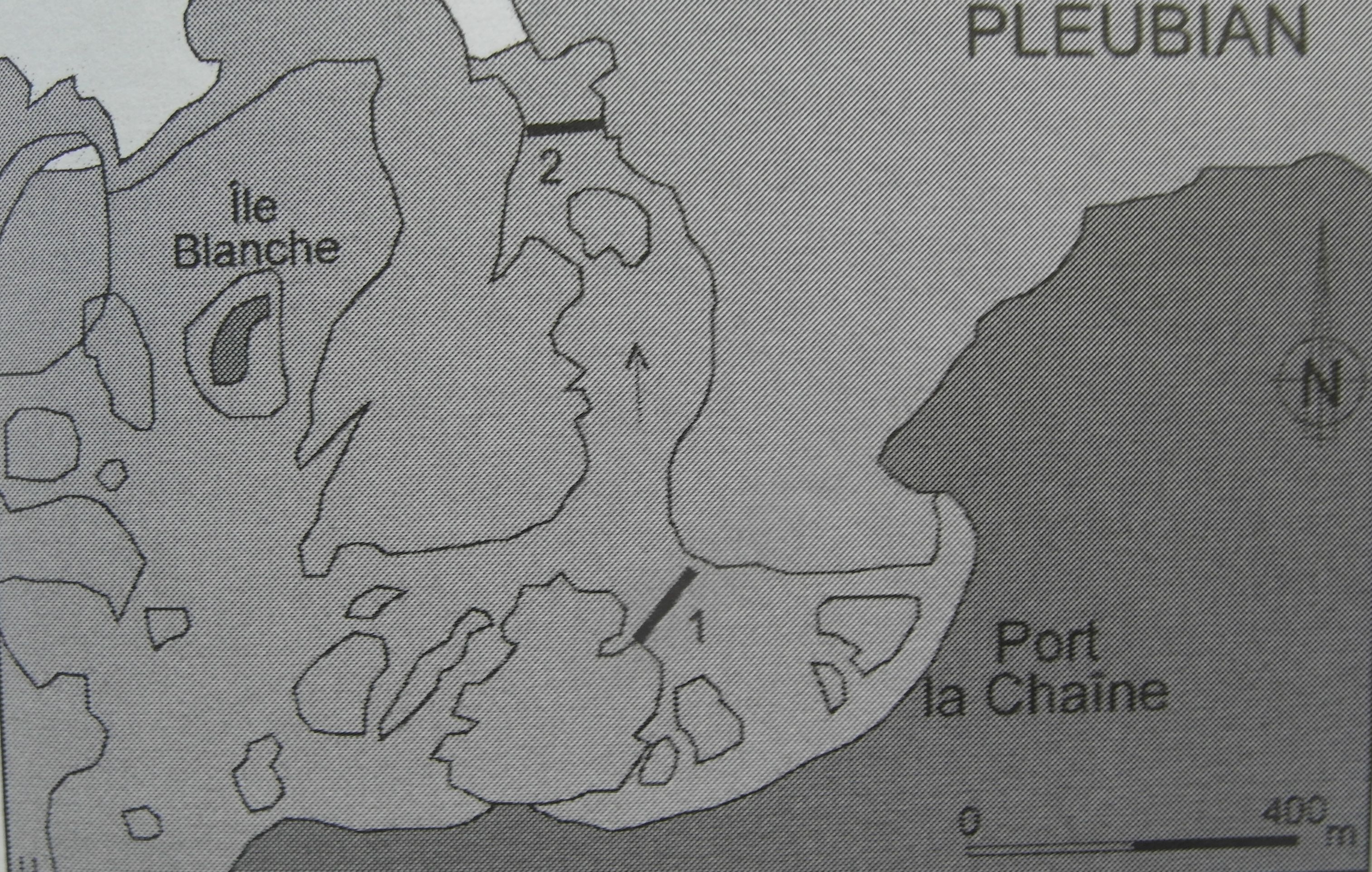 Barrages en pierres à Port-La-Chaïne et de l’Île-Blanche-Kermagen en Pleubian (dessin : Loïc Langouët)Immatriculation