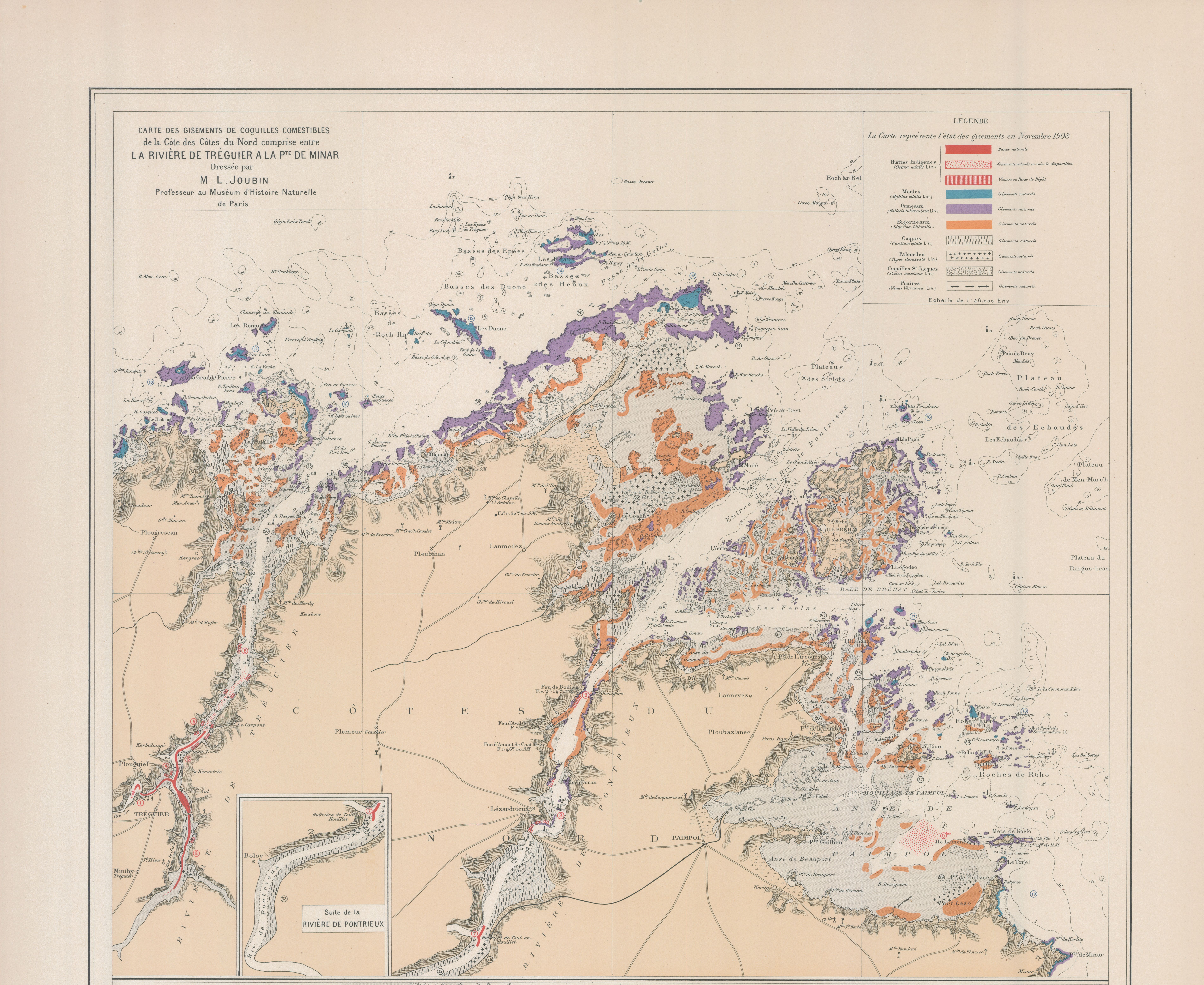 Carte de Joubin des ressources en coquillages comestibles, 1908 (Museum d’Histoire naturelle, Dinard)Immatriculation
