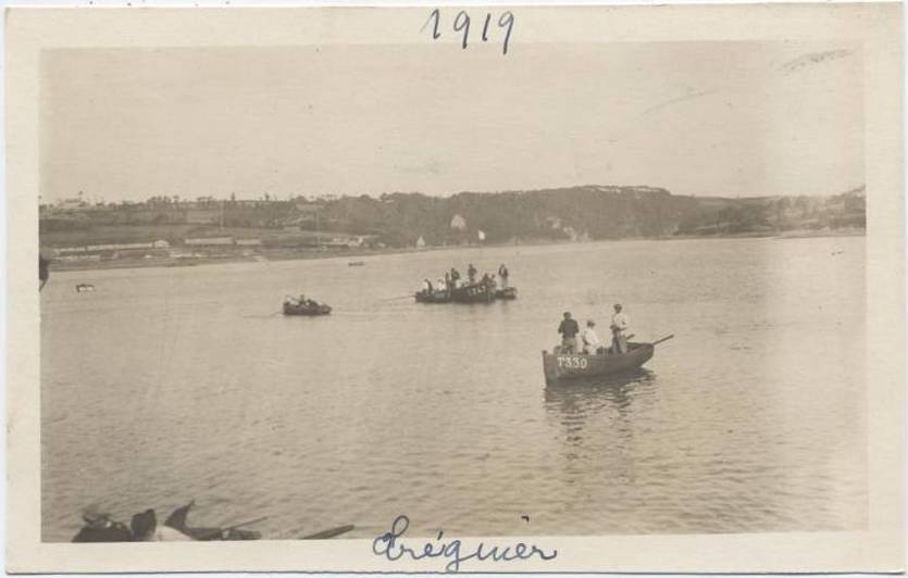 Photographie de la pêche aux huîtres sauvages en rivière de Tréguier en canot, 1919 (collection particulière)Immatriculation