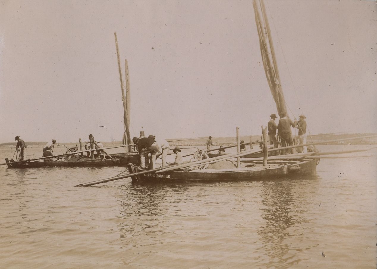 Bateaux sabliers à cul pointu de la Rivière de Tréguier devant le banc de la Pie, avec leurs dragues à poche (Faudacq)Immatriculation