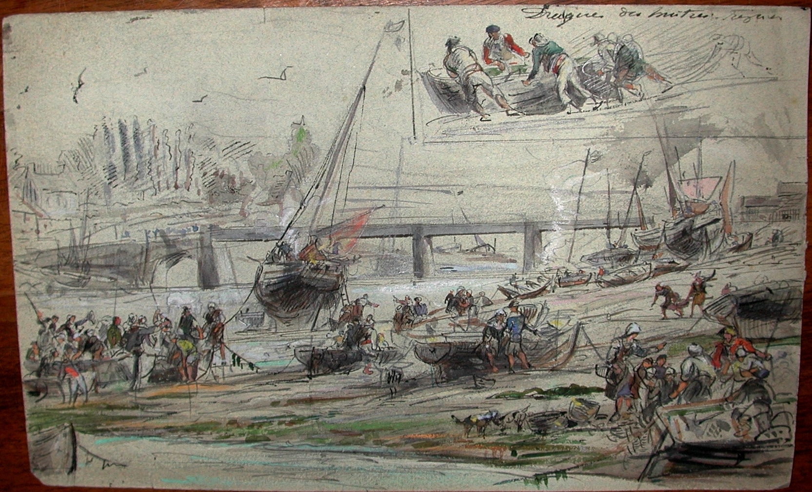 Scène de pêche aux huîtres devant le port de Tréguier (dessin aquarellé, Faudacq)Immatriculation