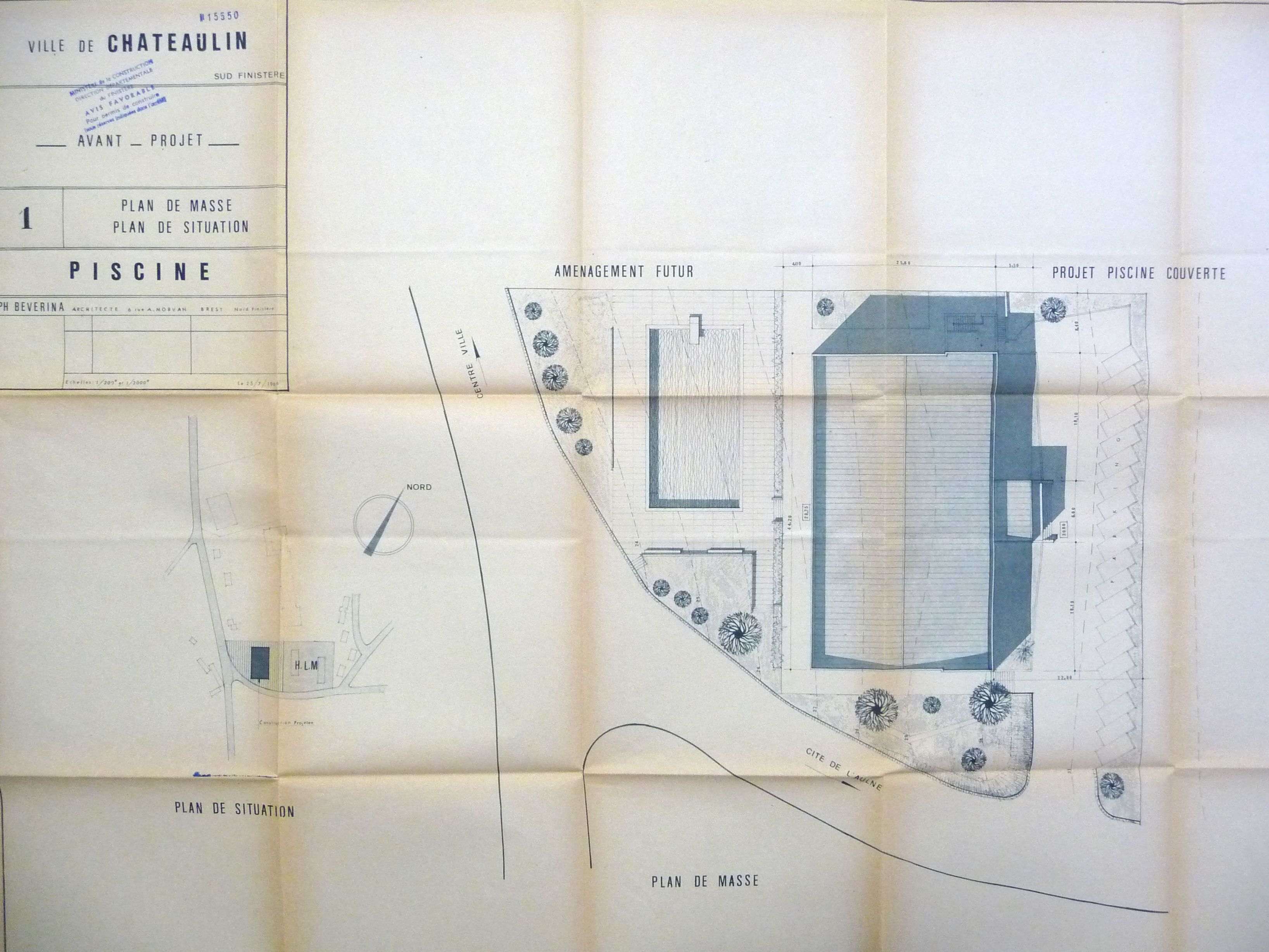 AC Châteaulin : 3 M 12. Plan de masse. Ph. Bévérina, 1968.