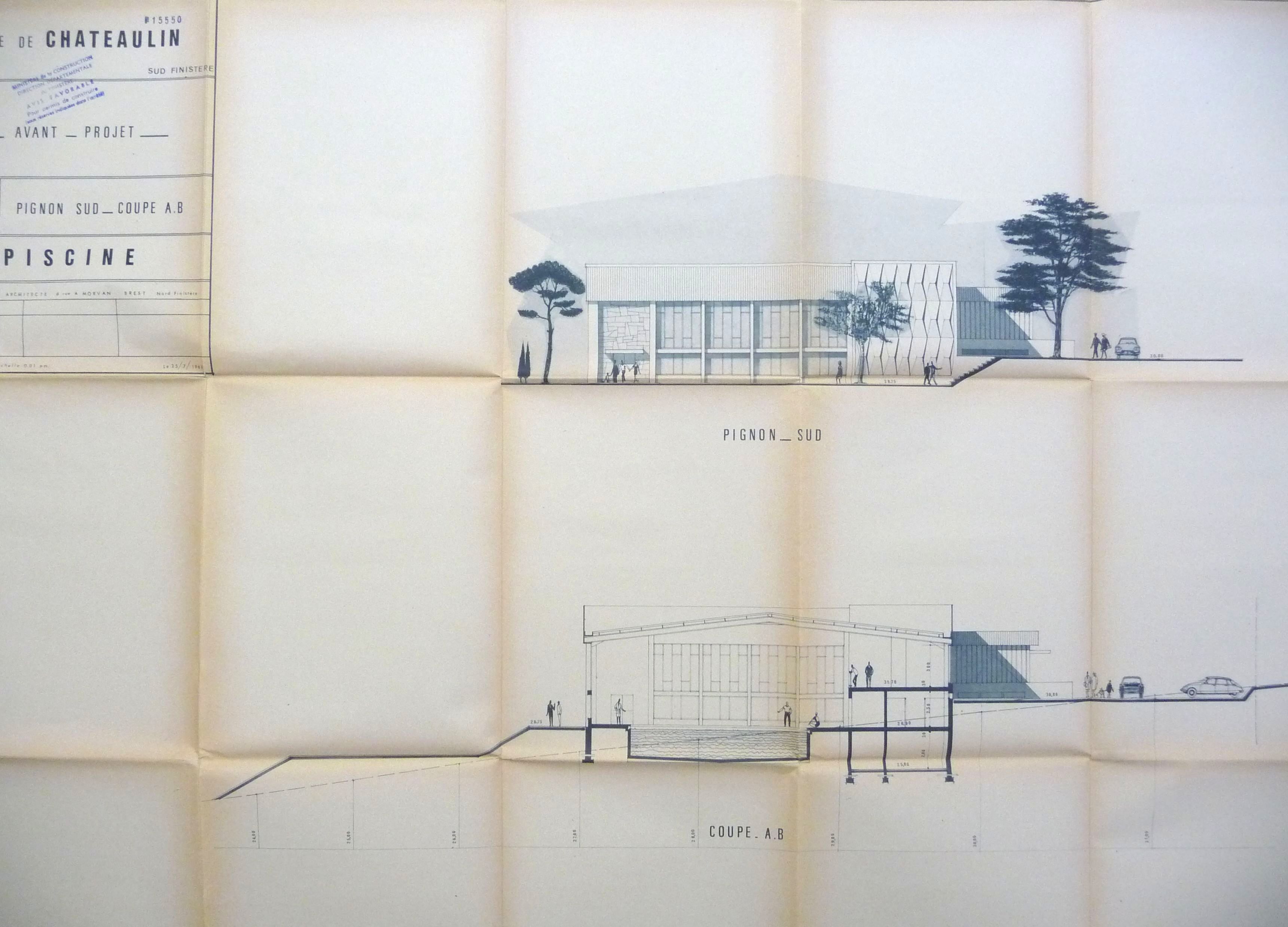 AC Châteaulin : 3 M 12. Pignon sud - coupe AB. Ph. Bévérina, 1968.