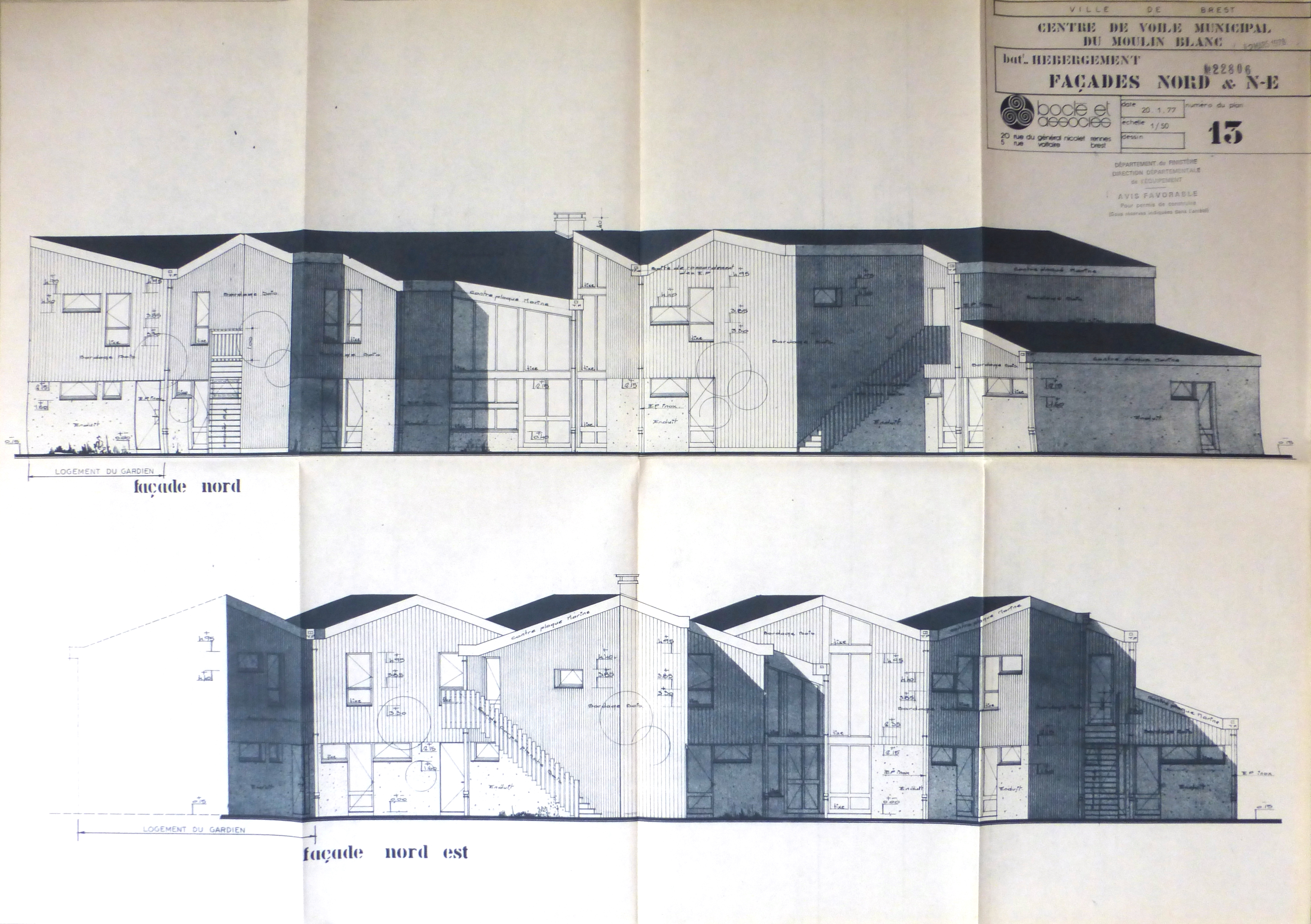 AC Brest : 33 W 12. Partie hébergement : façades nord et nord-est. B. Boclé, 1978.
